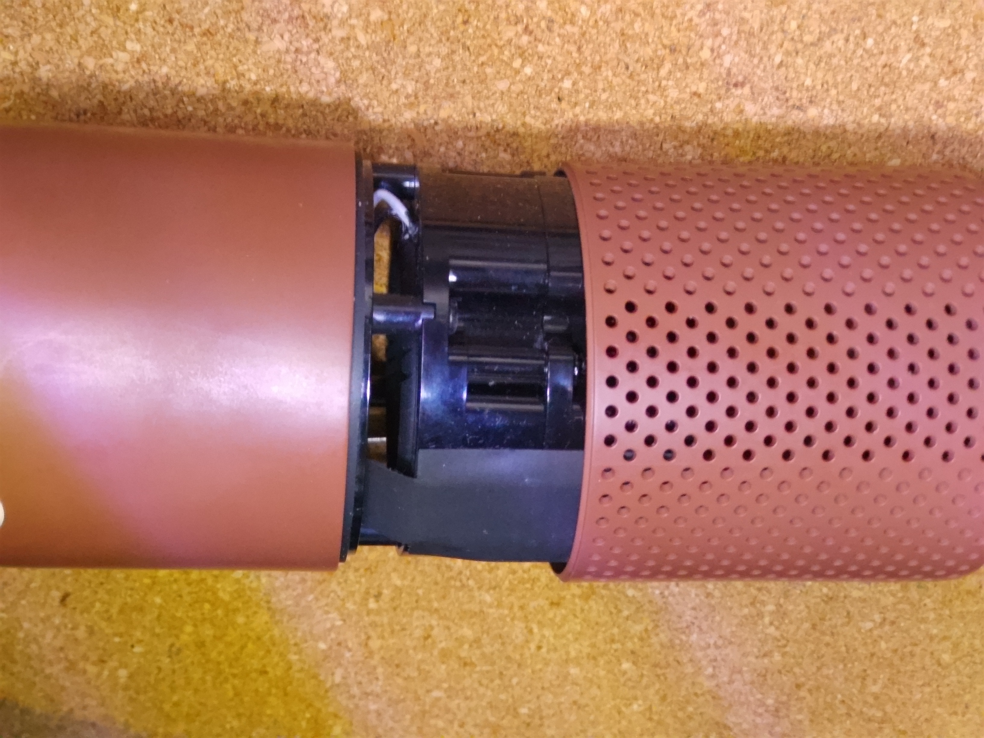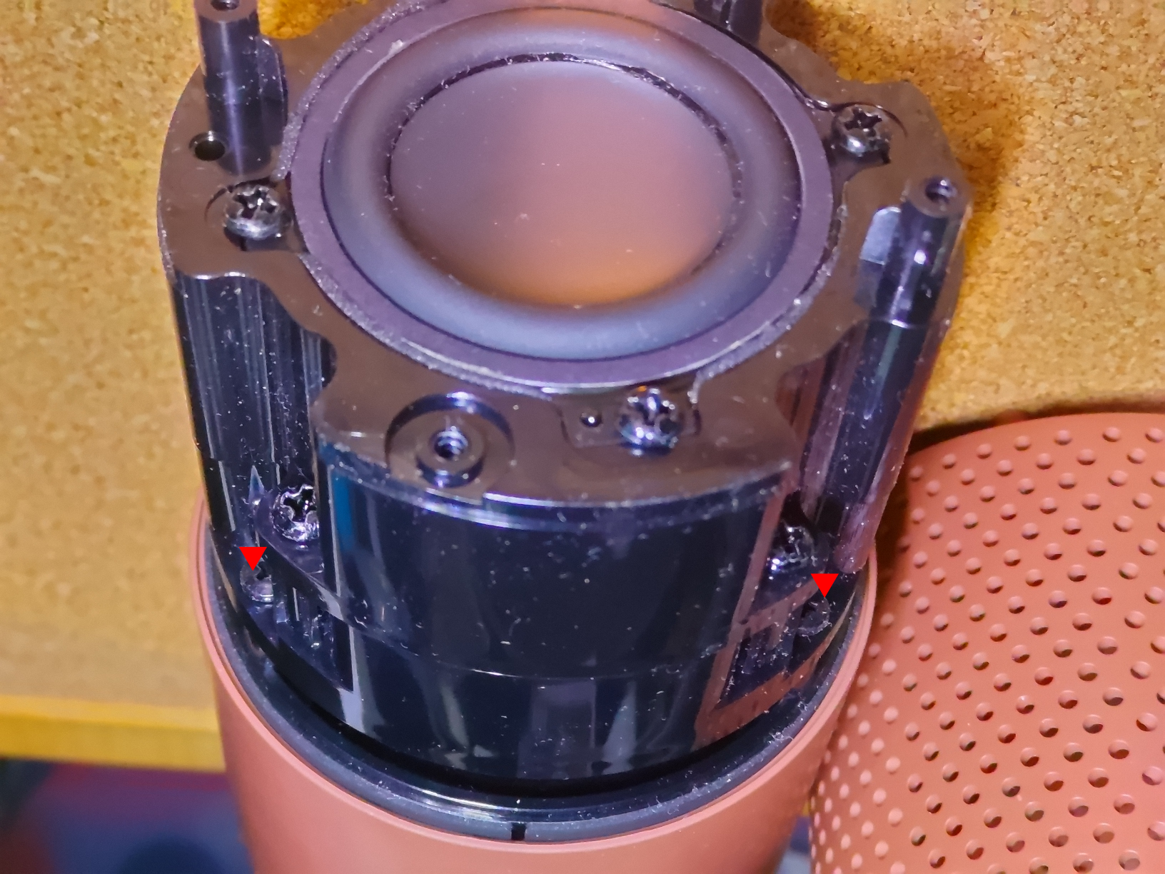 分離するとスピーカーの幕がむき出しになるので、傷つけたり破ったりしない様に十分注意が必要です。