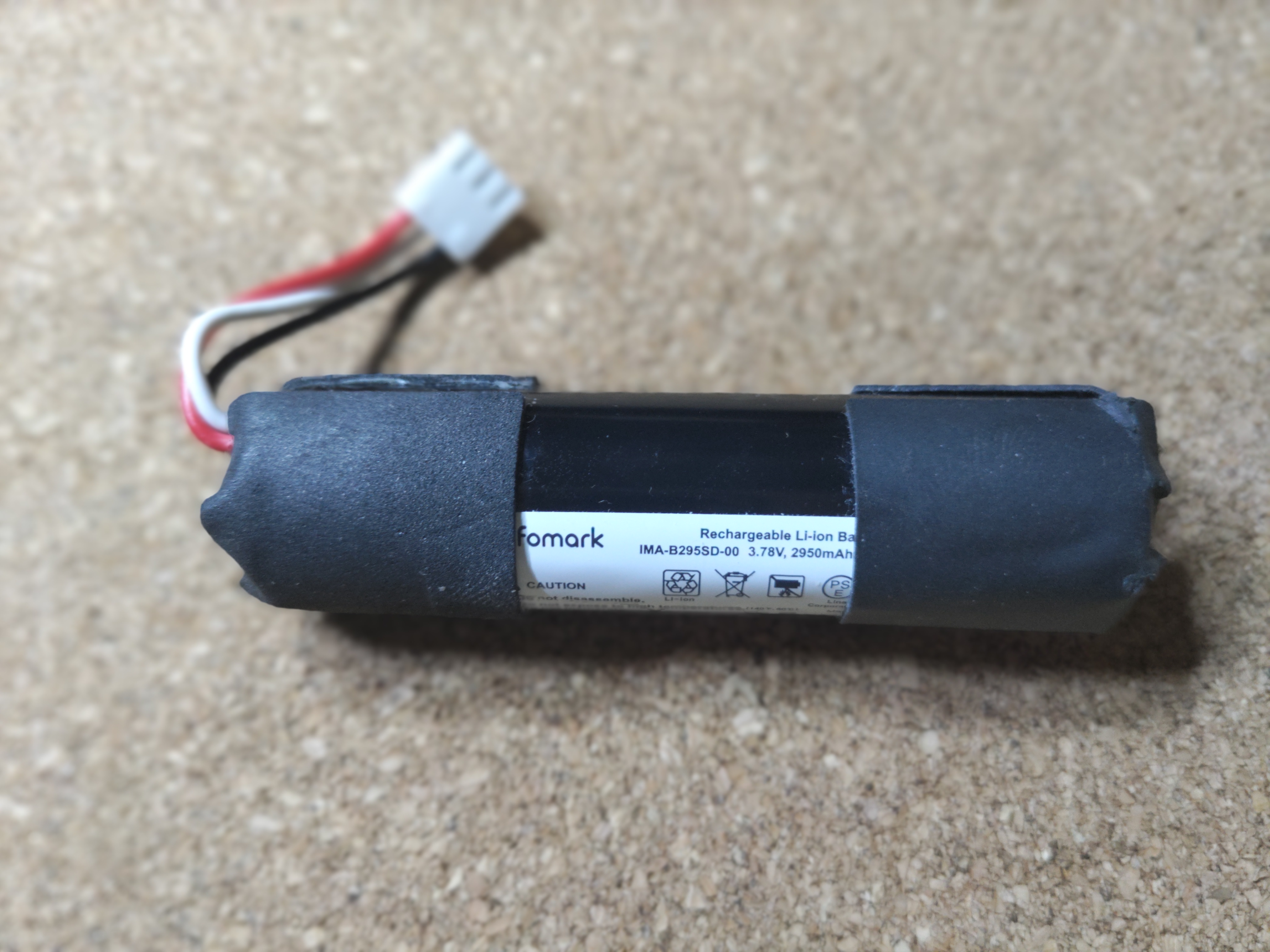 先ほど外したケーブルと反対側の奥にしたの写真の様な3本線のコネクターがあるので抜き、バッテリー本体を上向きに引っ張ると分離できます。