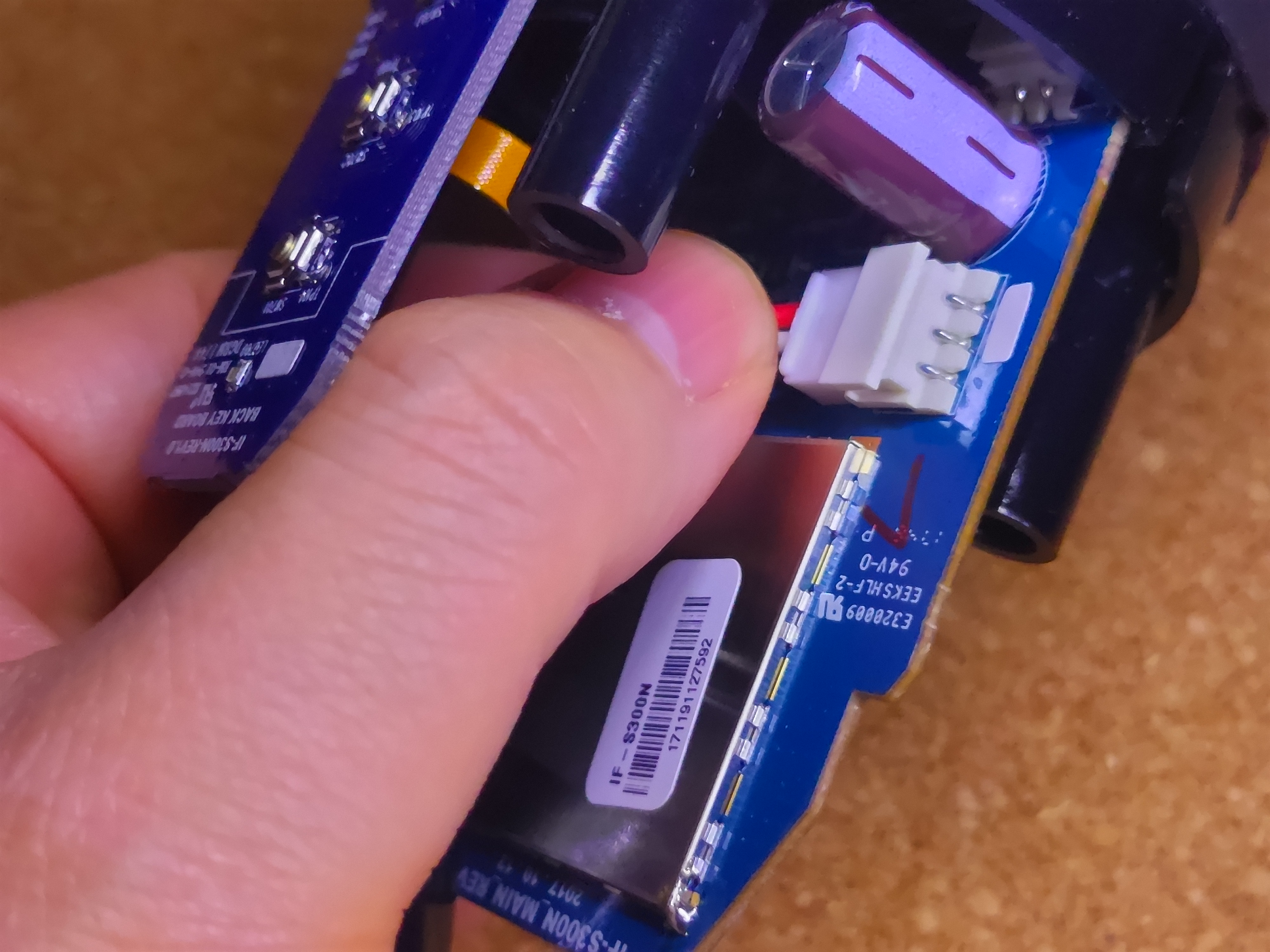 パート2で専用改造基板の場合は以下の接続ケーブルを抜く必要ありません。(抜いてももとに戻す必要があるだけですが、一度抜くとつけにくいです。)