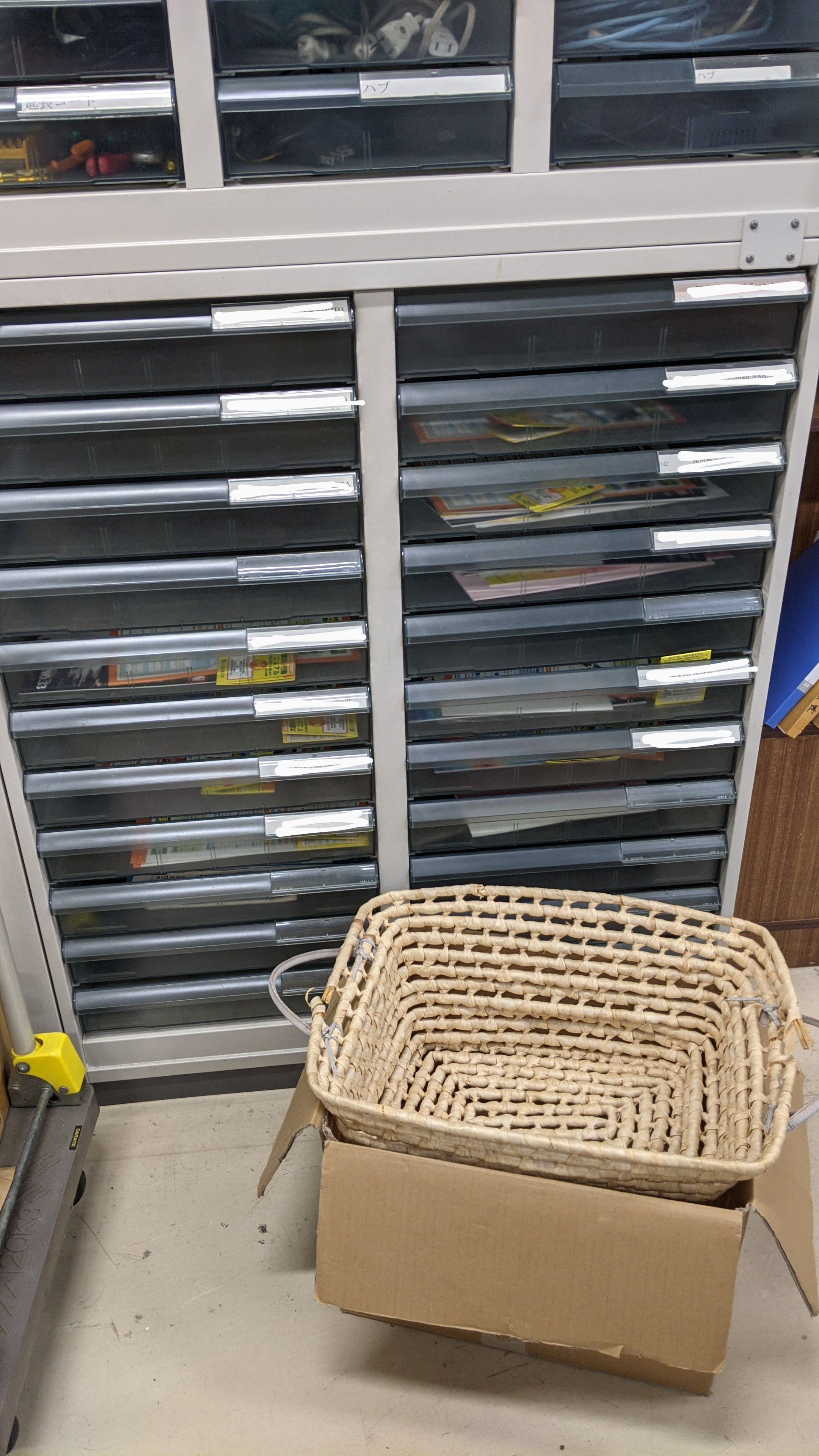 4年生は普段からここで活動しているためいつでも確認できますが、修士・博士課程の学生や教員はわざわざ確認しにこないといけない状態です。そして研究者というのはどうもこういう、定常的、または定期的になにかを行うということが苦手らしく、ポストの半分ほどはおそらく数ヶ月は放置されているだろうというくらい資料があふれています。