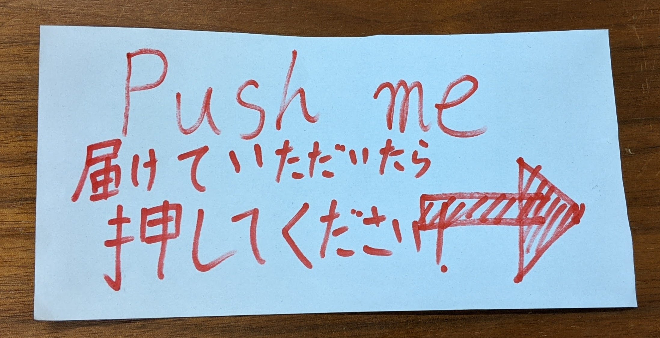 こんな感じの紙を貼っておきました。押せばいいというのはわかるので、たぶんうまく行くと思われます。