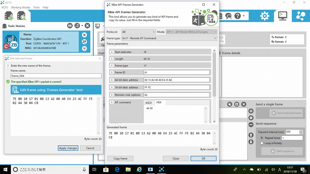注意:再現する場合、XBEE固有のモジュールIDを変更する必要があるので、2面の変更が必要です。
