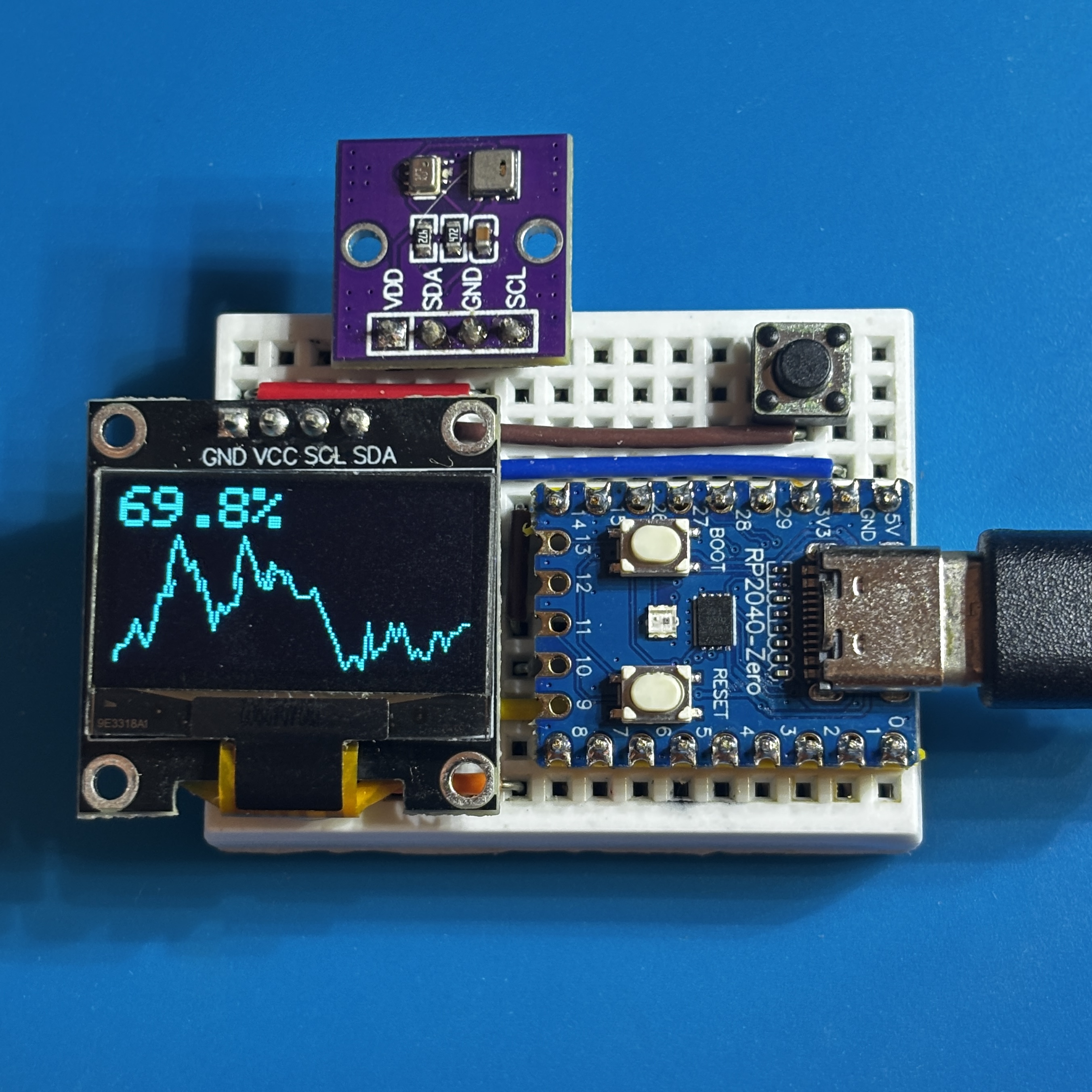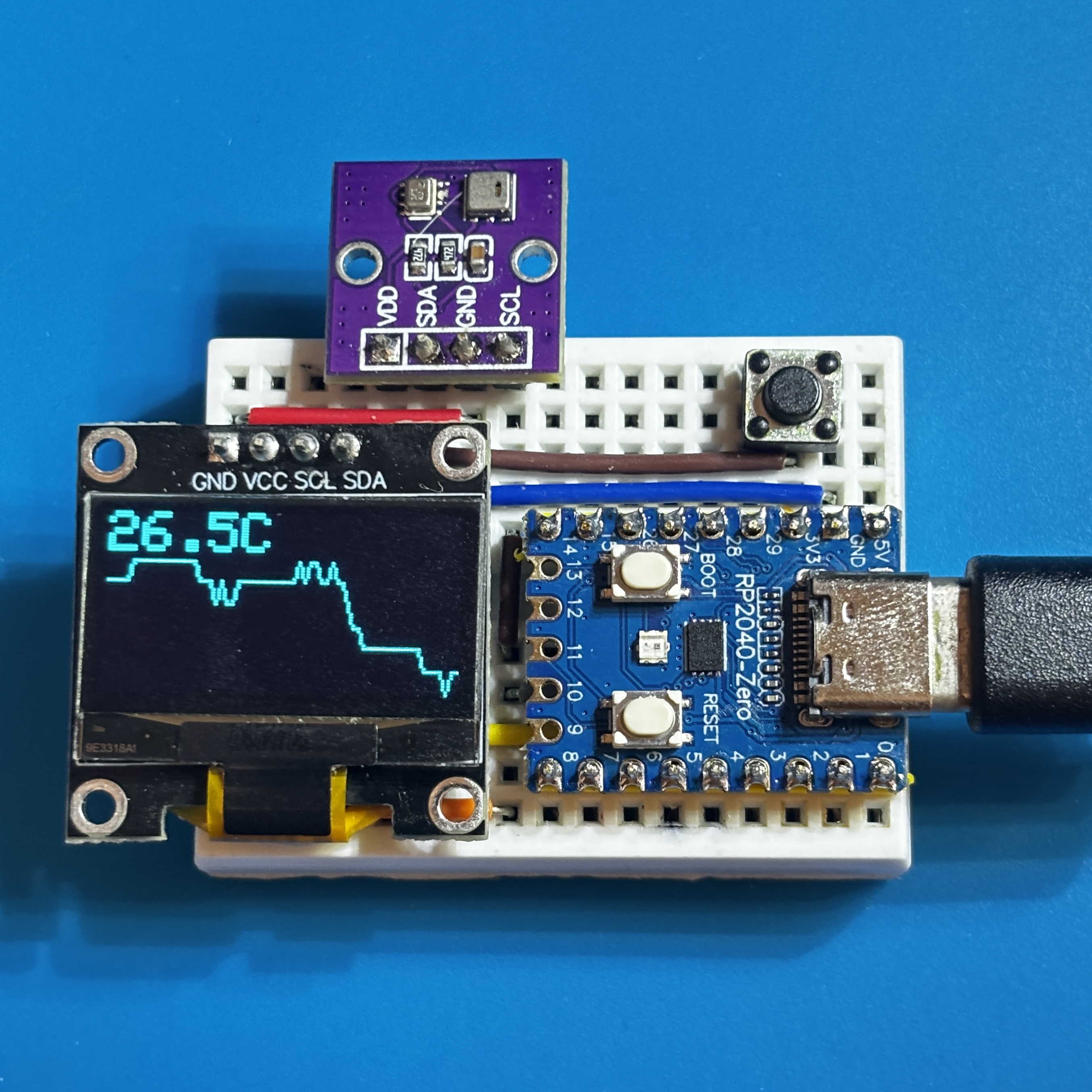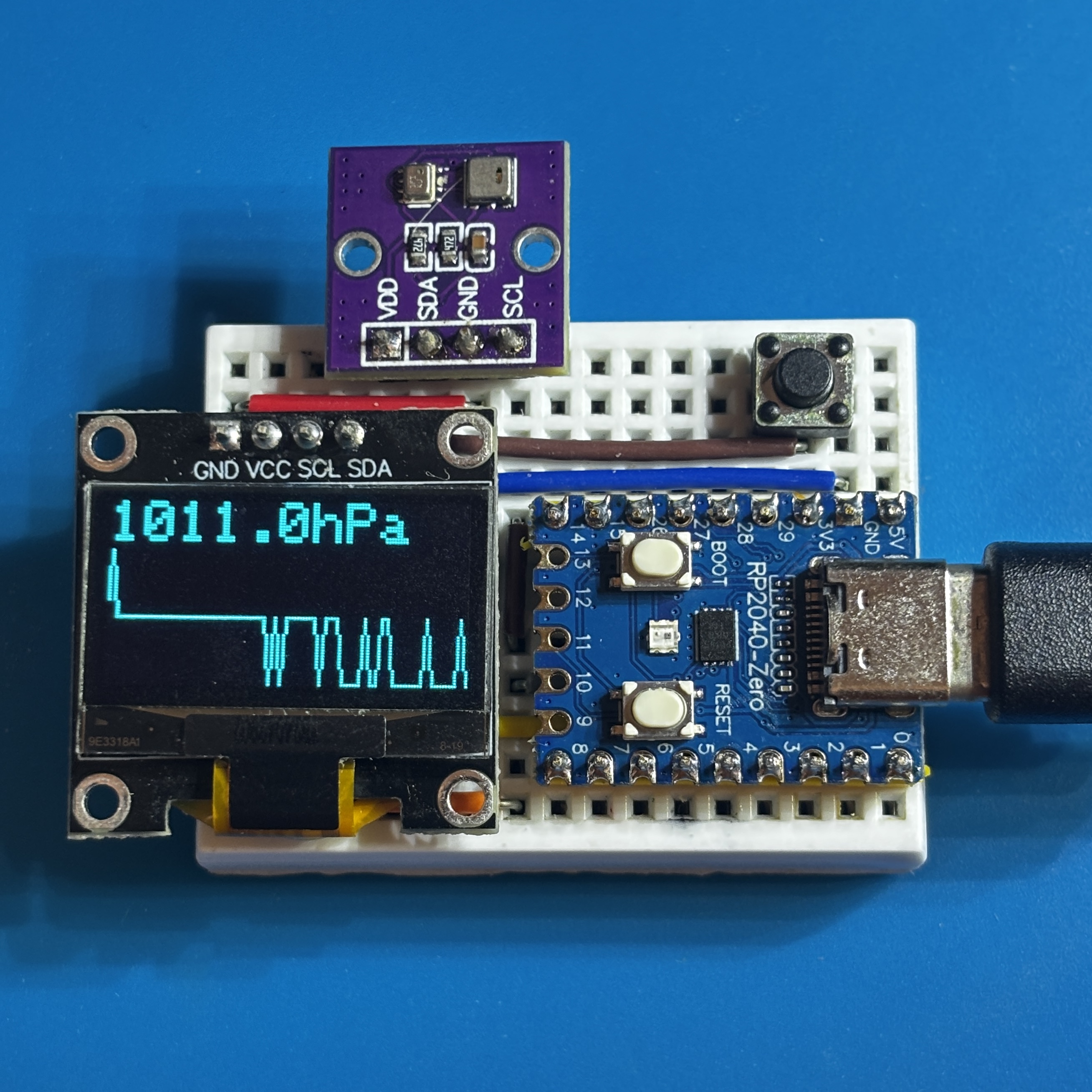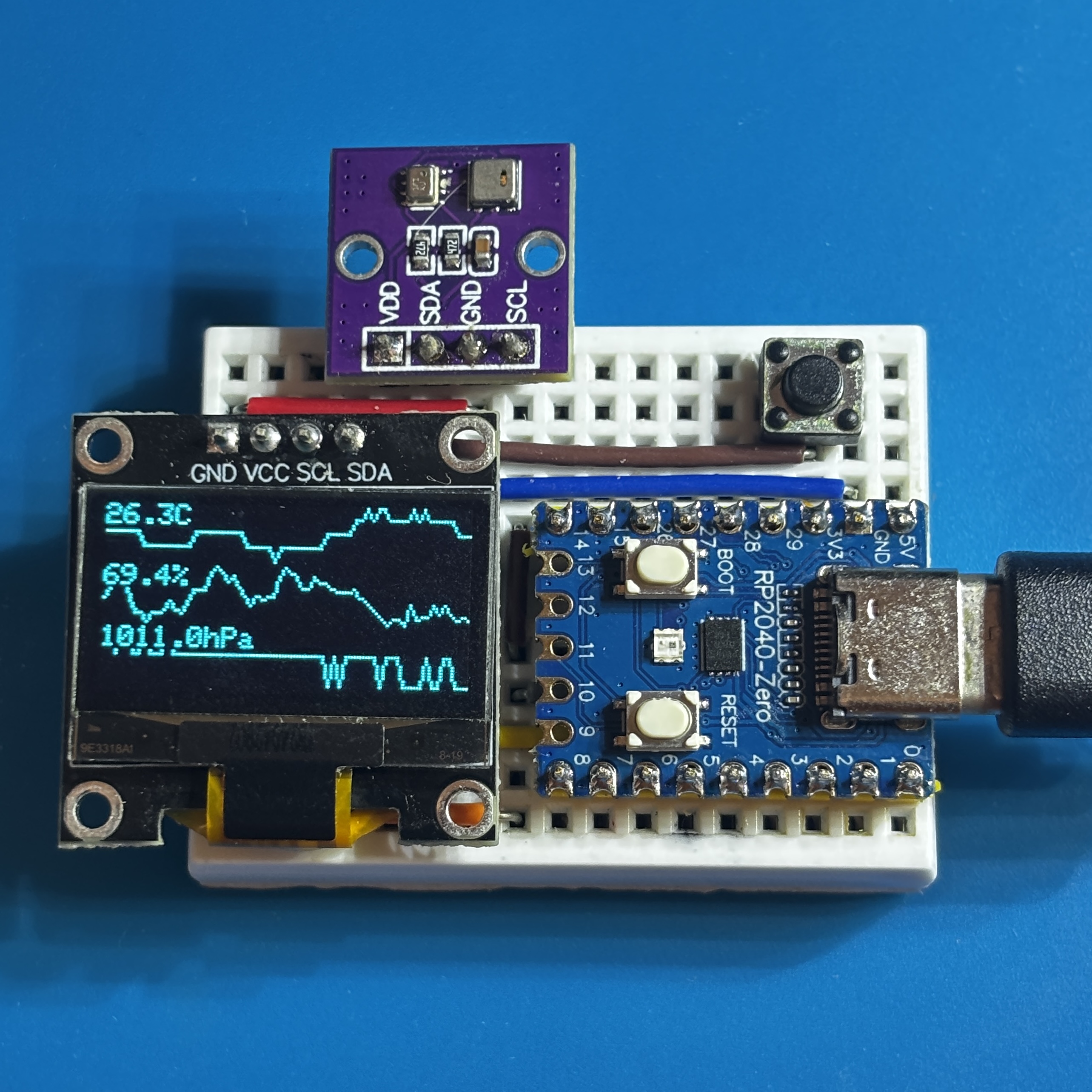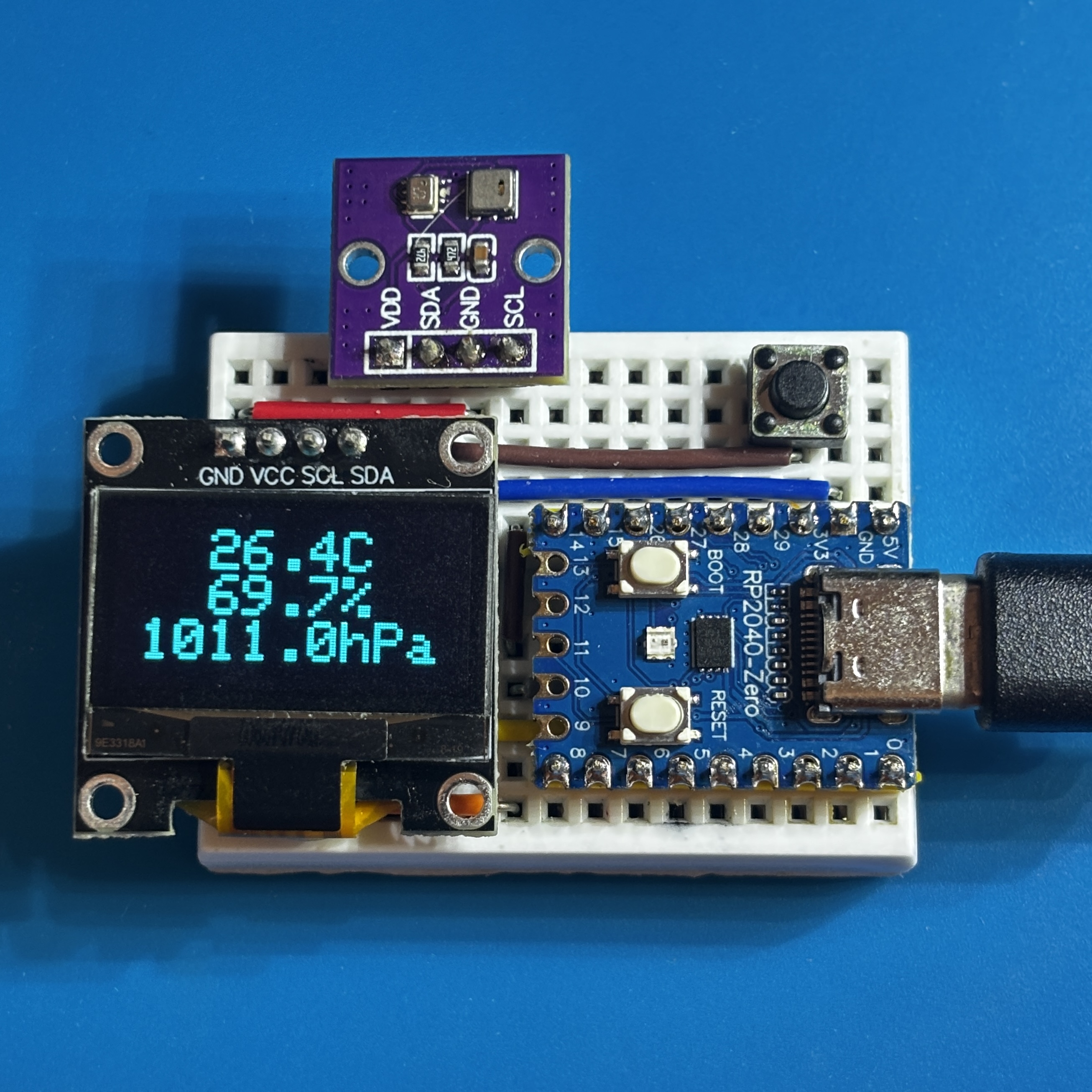 定期的に温湿度・気圧を測定して、OLED に表示します。