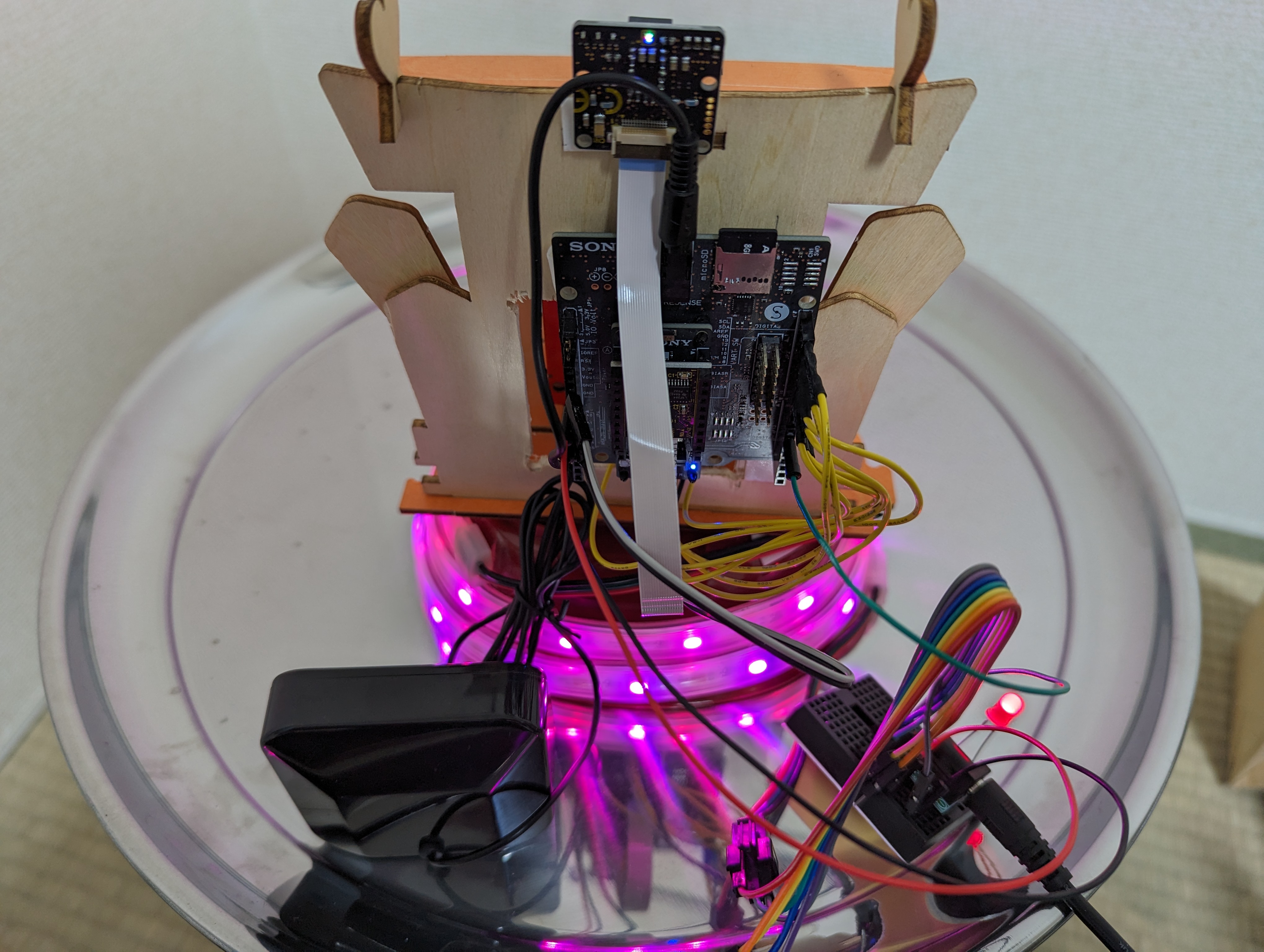 2023年 SPRESENSE™ 活用コンテストに応募するにあたり、「パリピ神棚」というコンセプトを掲げました。そして、紆余曲折の末に出来上がったものがこちらです。
