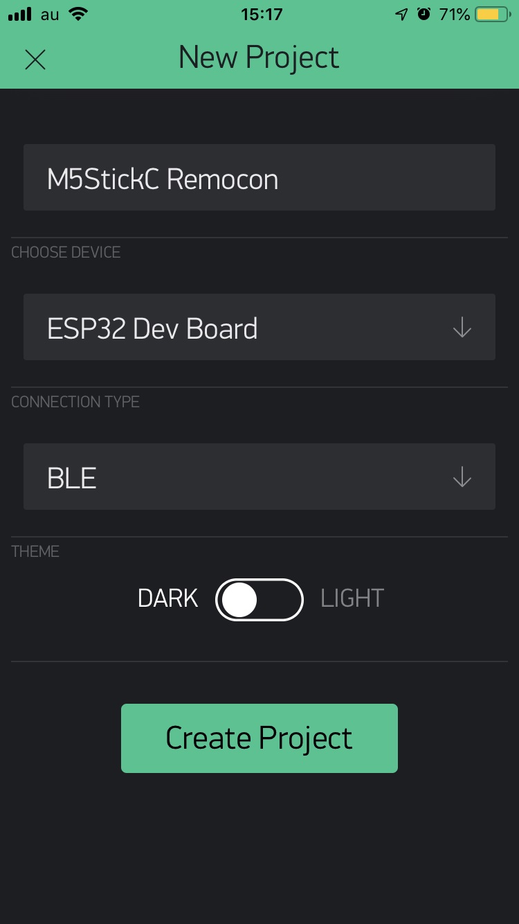 M5StickCでBLEで通信する場合は下図のようにします。Project Nameには好きな名前をつけましょう