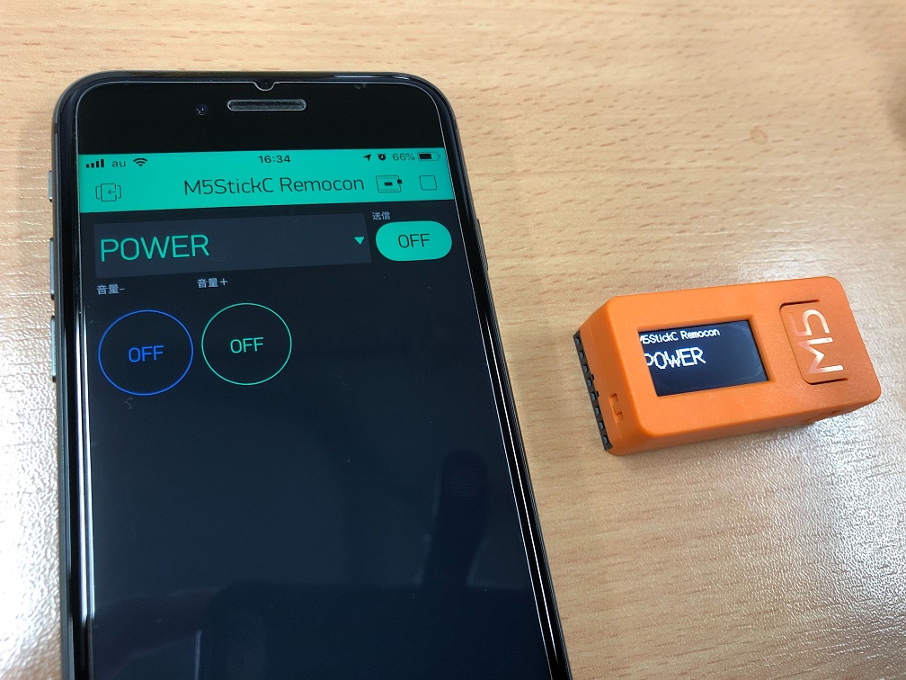 送信ボタンを押すと、赤外線信号をM5StickCから送信することができます。