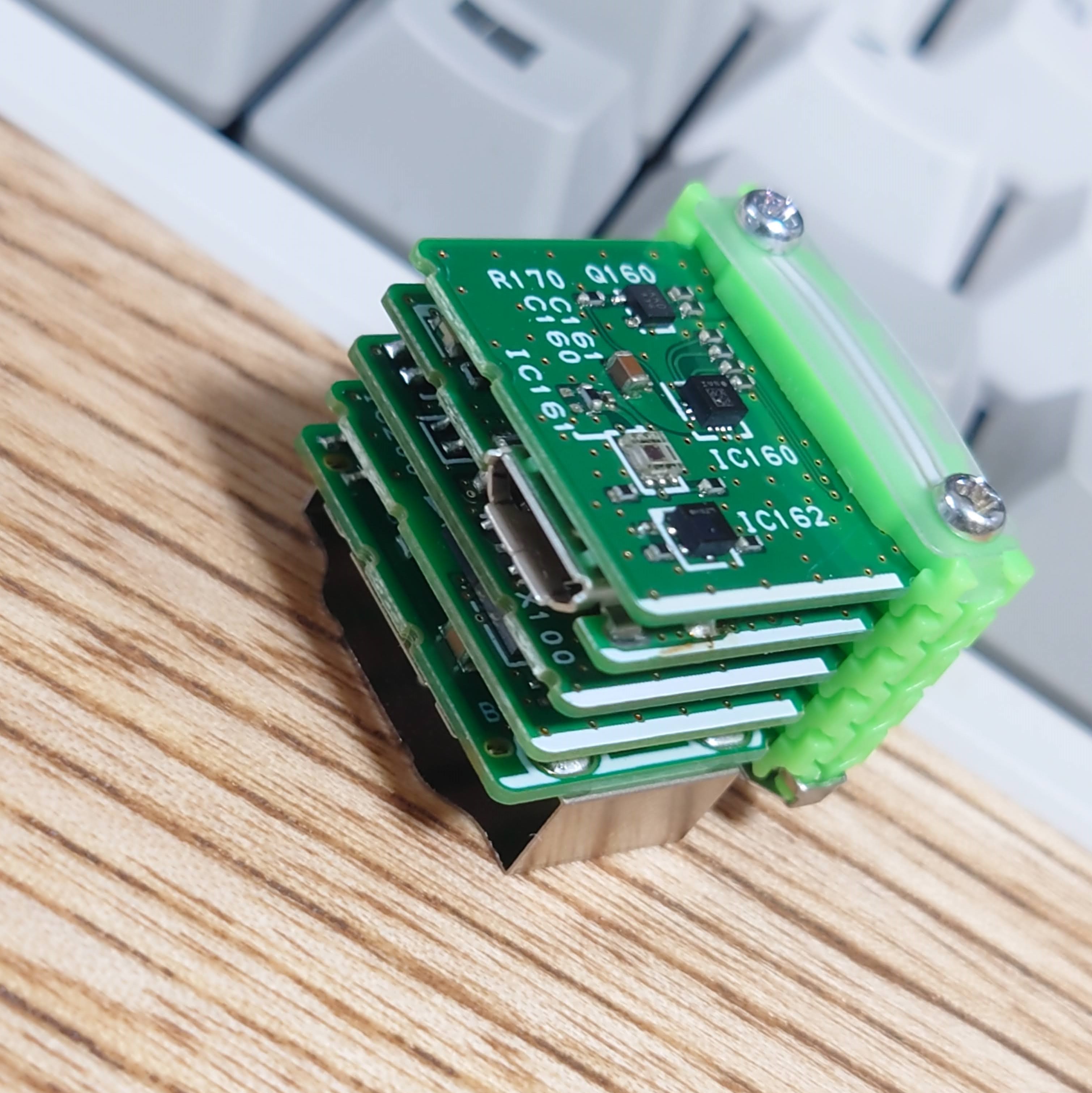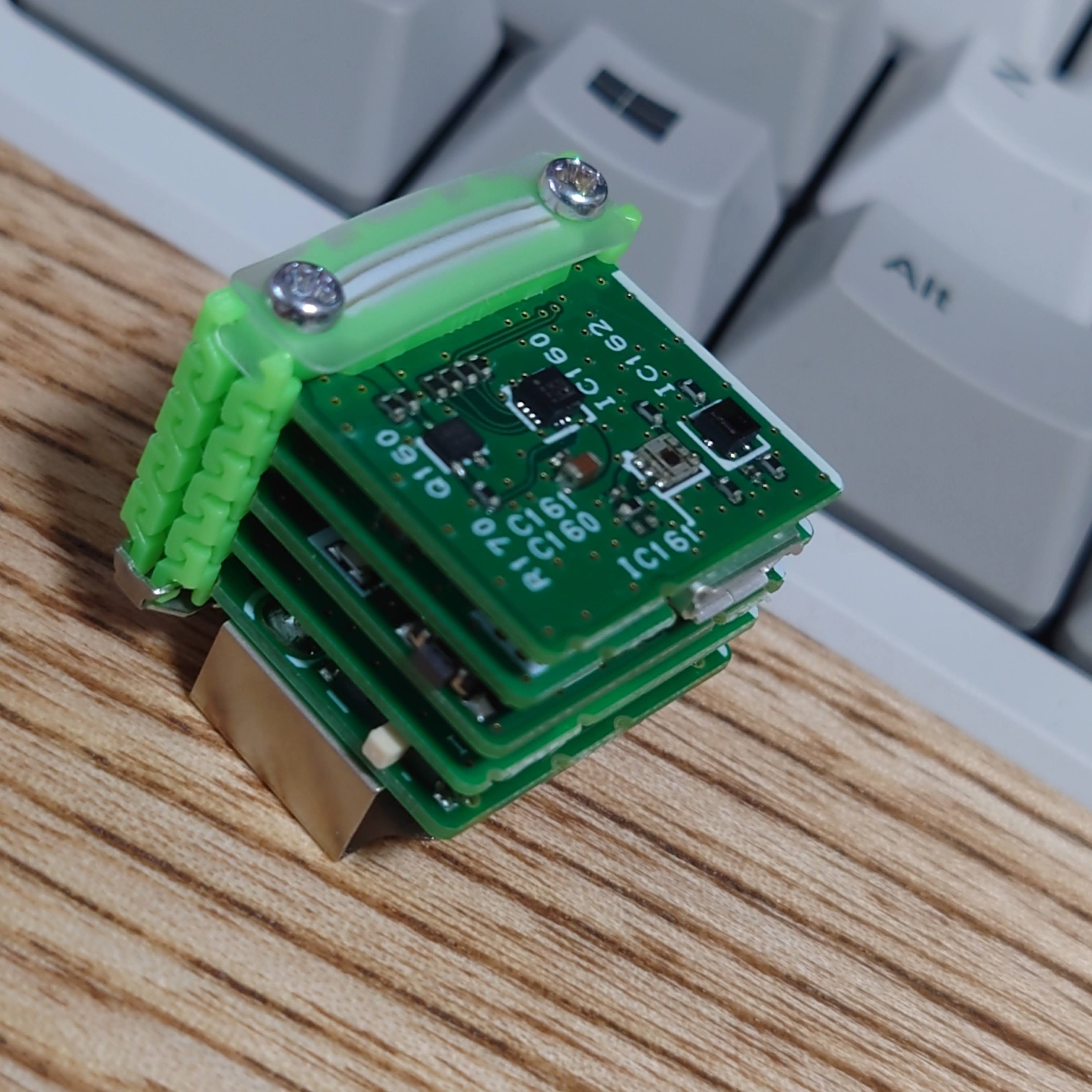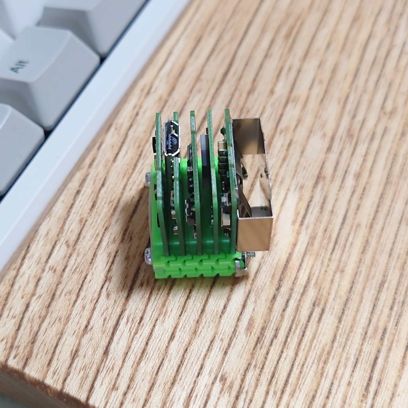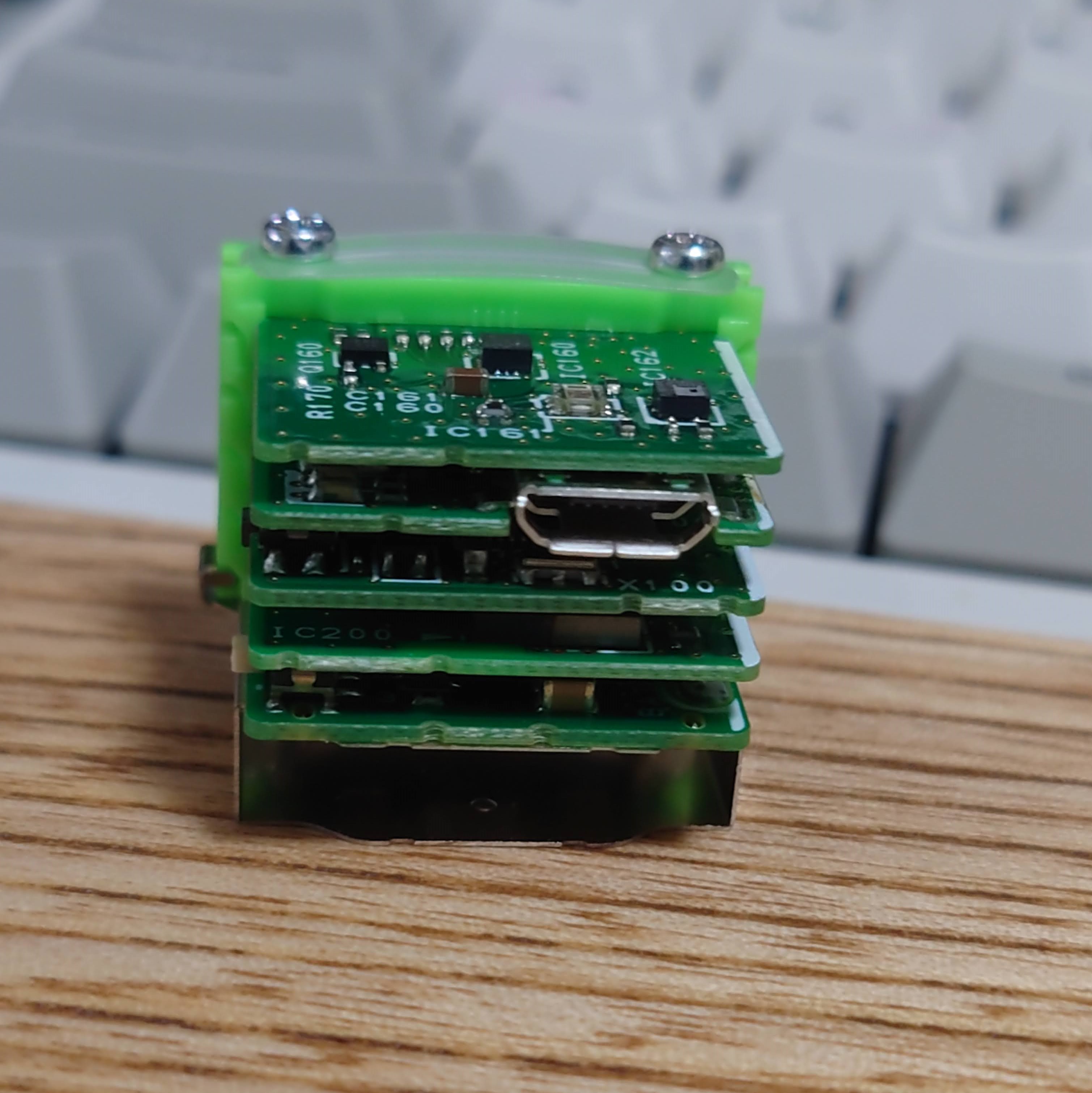 下からAV01A CR2032、AC02A BLE Sugar、AP01A AVR MCU、AZ01A USB、AI01A 4-Sensors という感じで接続されていました。(下記画像の左が下に配置)