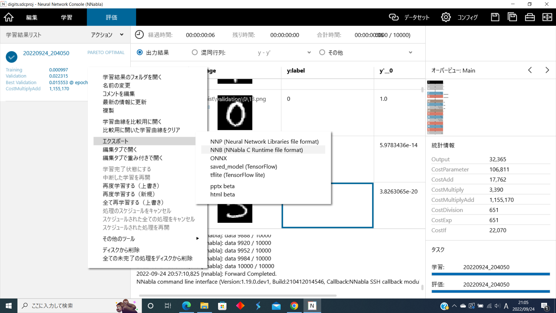 終了したら、左上の結果を右クリックして、エクスポート→NNBを選択します