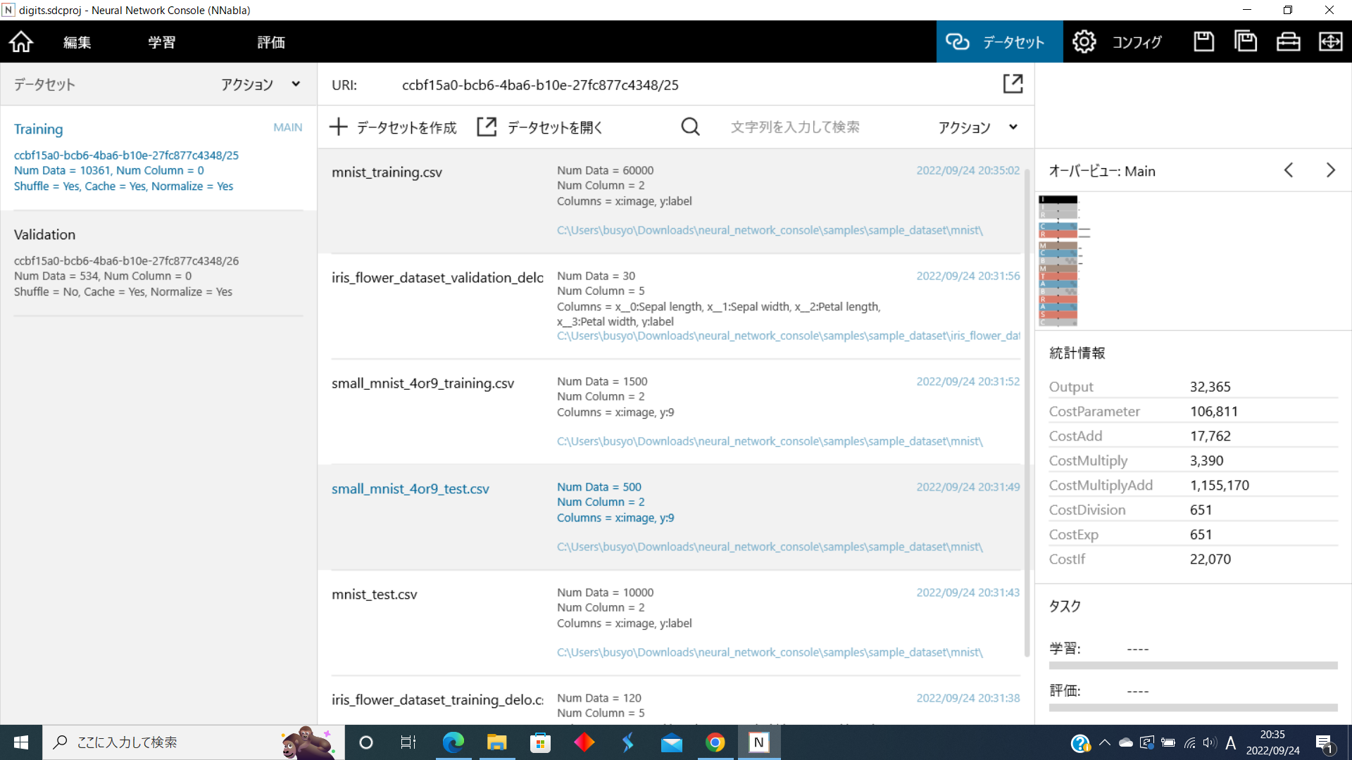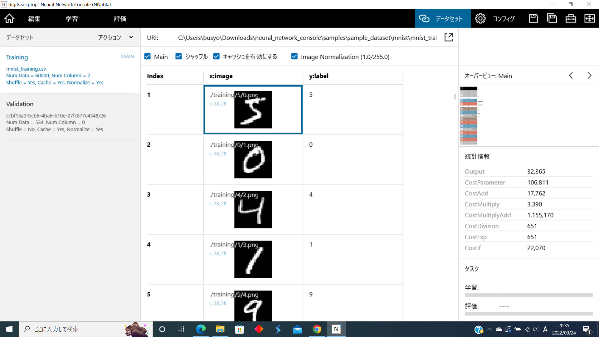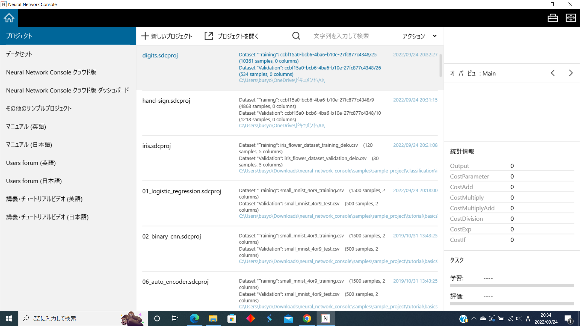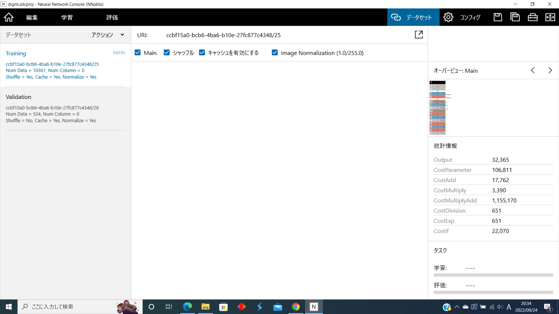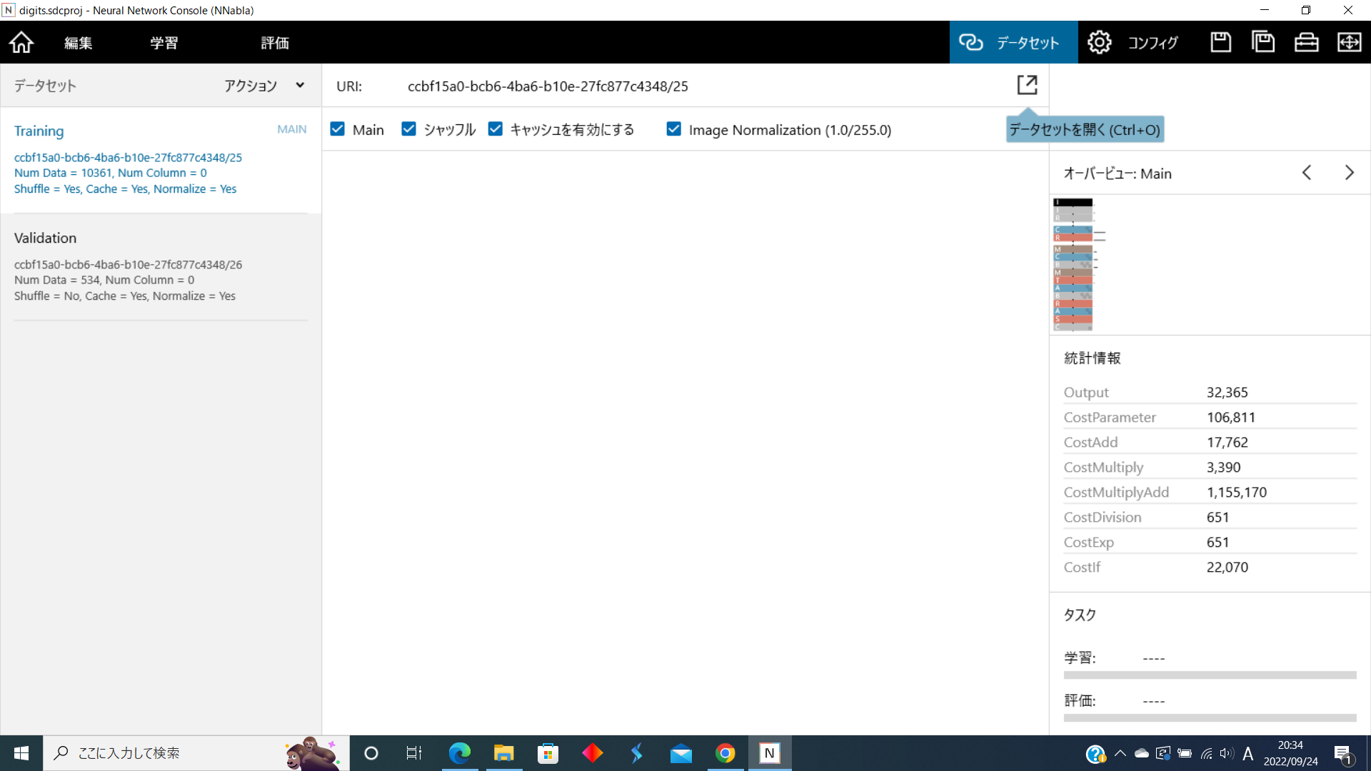 NeuralNetworkConsole Windows版でダウンロードしたファイルdigits.sdcprojをプロジェクトで開くで開いてください