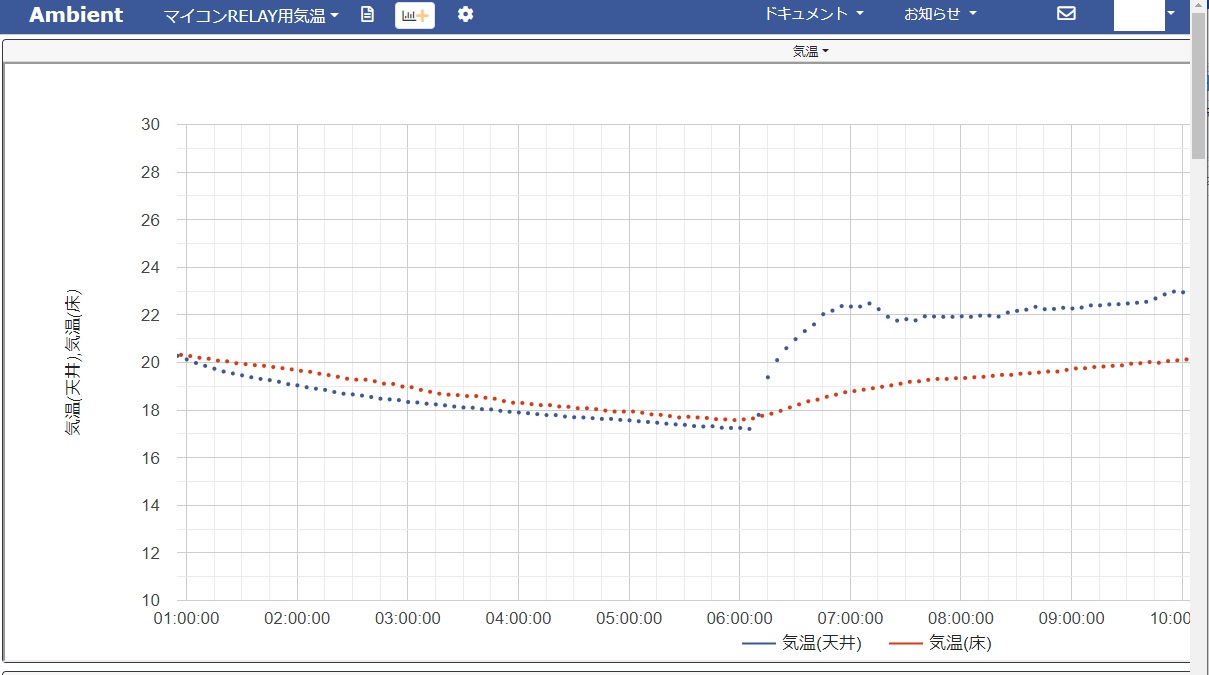 床は床で温度を測り温度差が3℃以上あったらリレーでAC電源を制御してサーキュレーターを自動で動かしてみたいと思う。