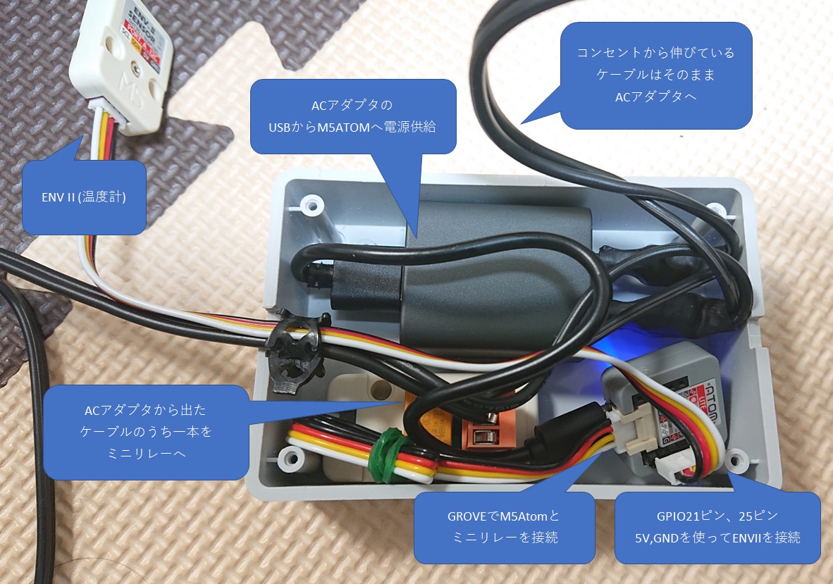 - 通信&リレー制御にM5Atom 天井用と床用 計2個