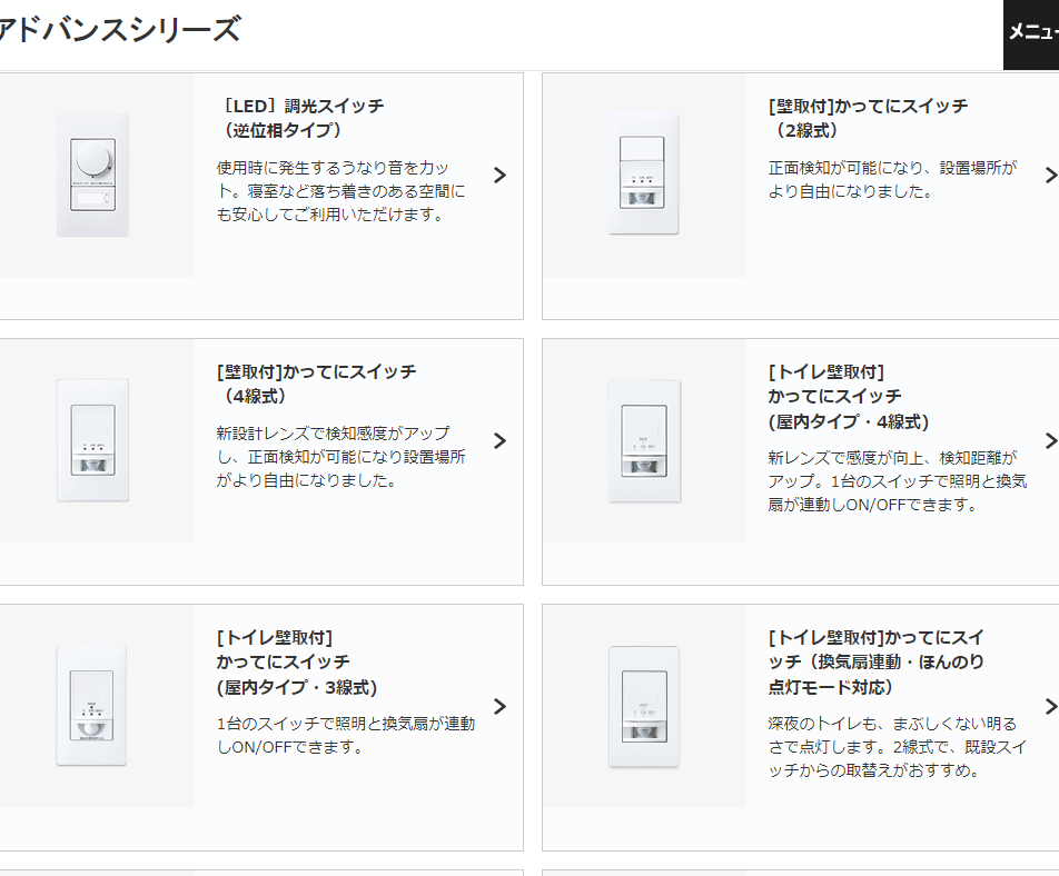 但し、触るものではないので、壁に一体化して目立たない「アドバンス」シリーズを採用しております。