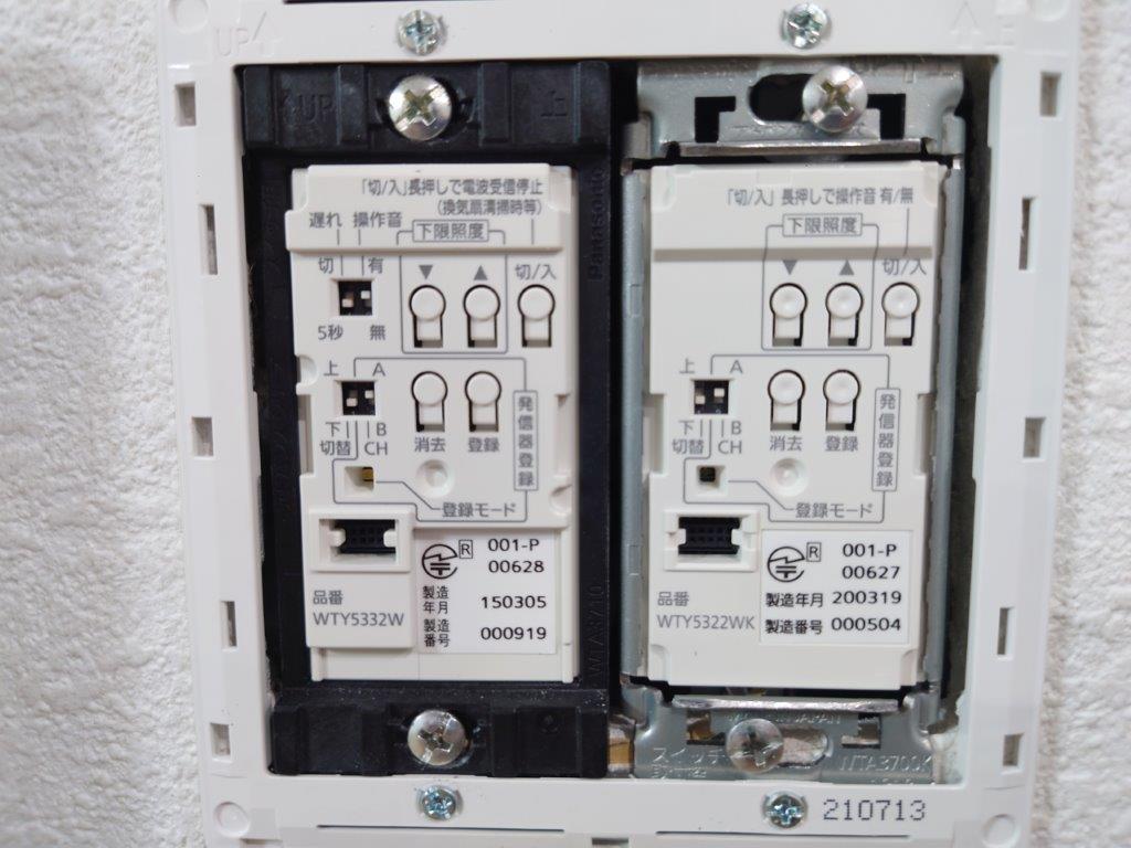 - スイッチ部取り付け型、LED/換気扇制御 (トイレ用)