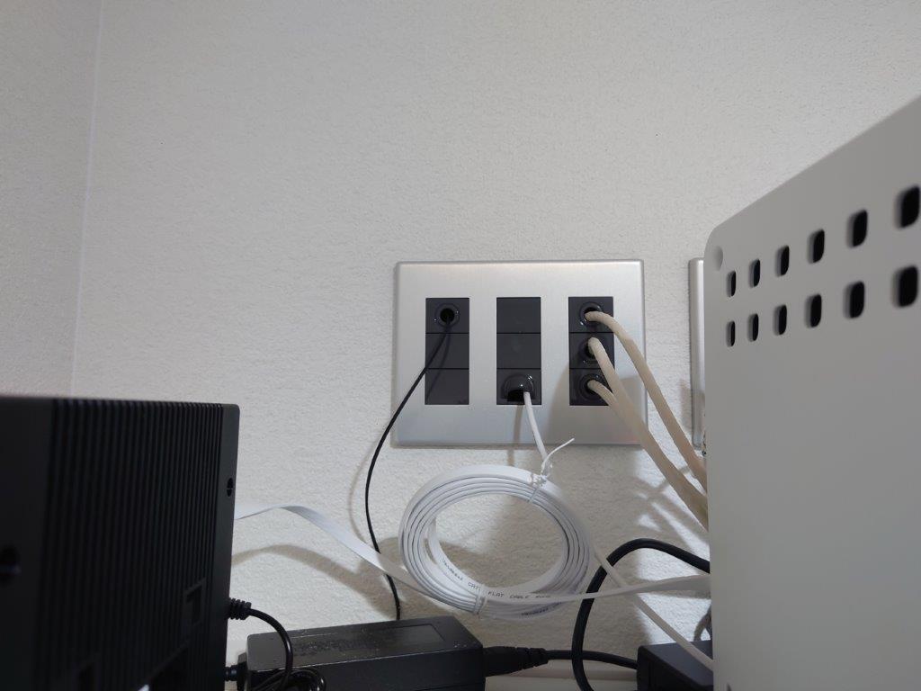 1Gbpsでいいなってところは、パナソニックのLANコンセント「ぐっとす」のCAT6を使って配線しています。