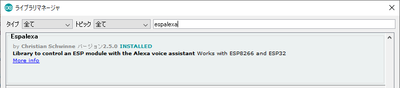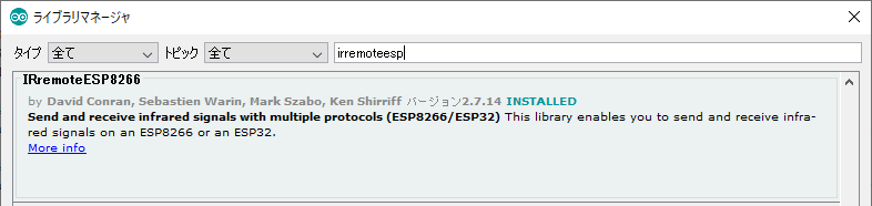 開発環境は、赤外線送受信ユニットのサンプルスケッチ及び連携するAmazon Alexa接続用のライブラリのあるArduino IDEで行いました。