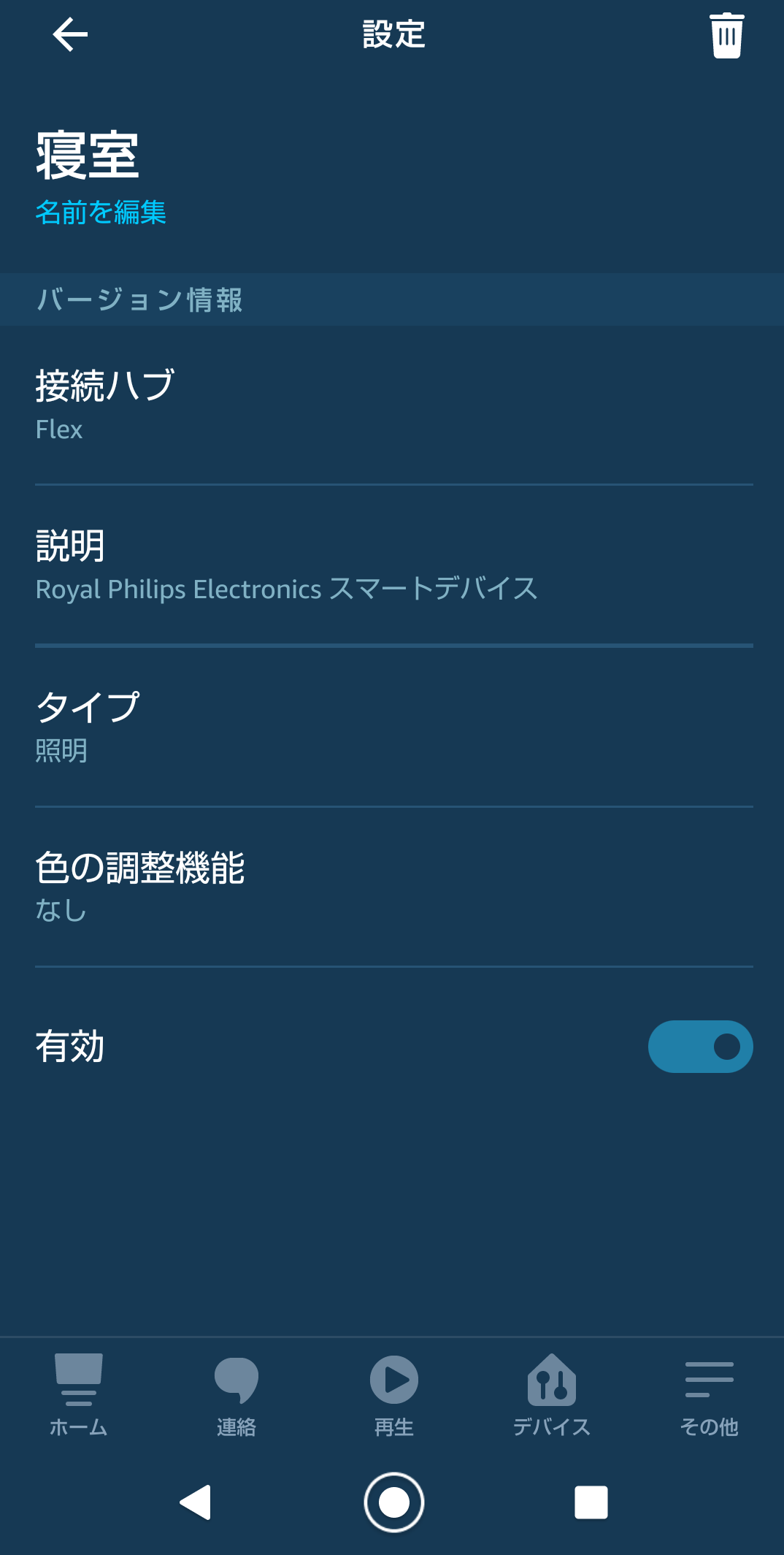 その後、Alexaアプリの "照明" に "BedLED" という名前のデバイスが追加されます。追加されたあとはAlexaアプリ側で好みの名前に変更可能(例えば "寝室")です。