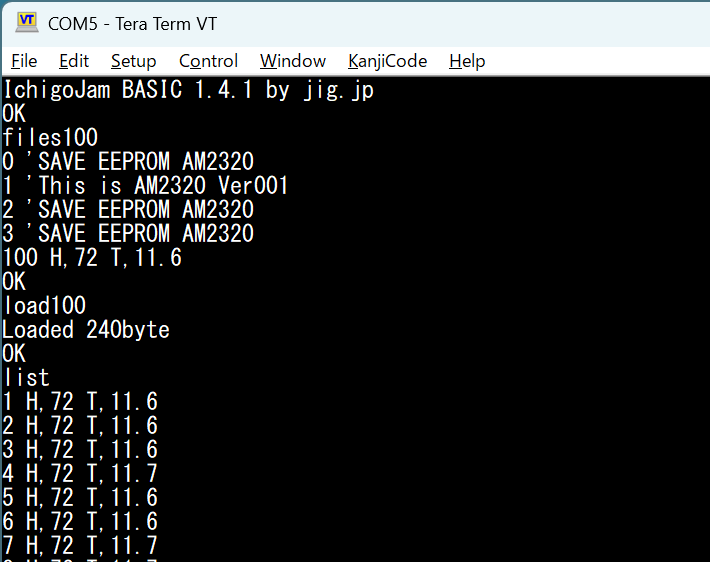 IchigoJamPCとAM2320・I2CEEPROMを使って 温度・湿度を記録します