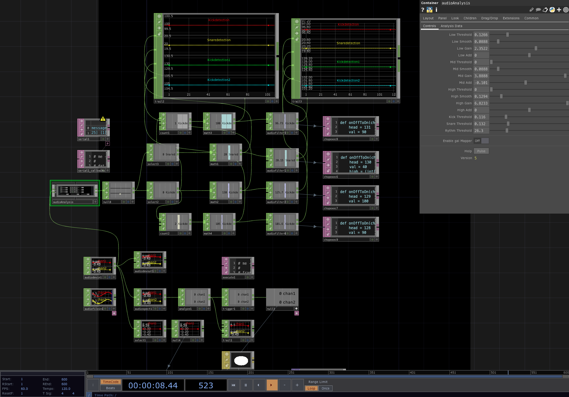 audioAnalysis(周波数領域に分割しGain等の調整、及びここでKick,Snare取得の簡易な調整が行えました)