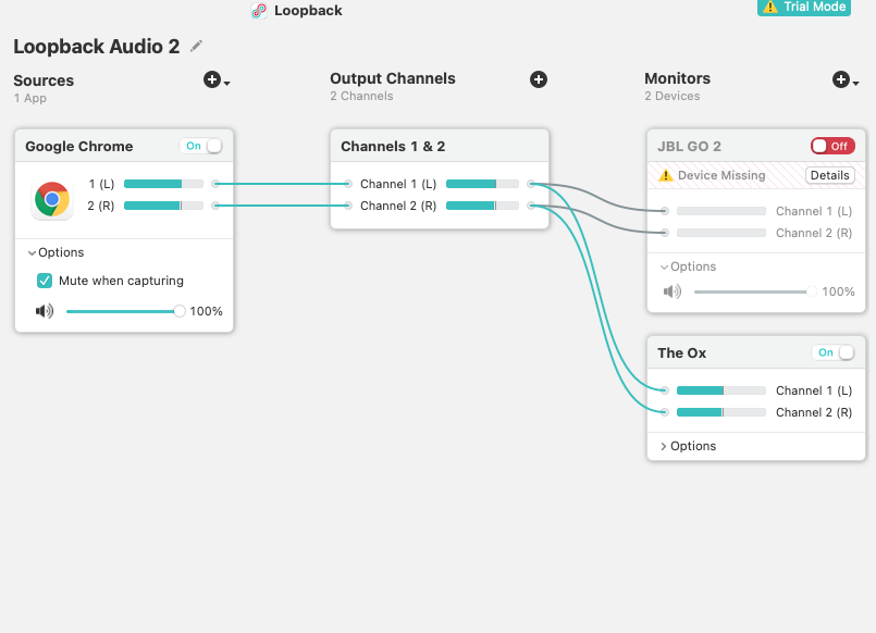 Audio Outへ出ていく音を通常はPC内の他のソフトへのInputとして扱うことはできないため、Loopbackというソフトで仮想的なデバイス構成するということで解決します。