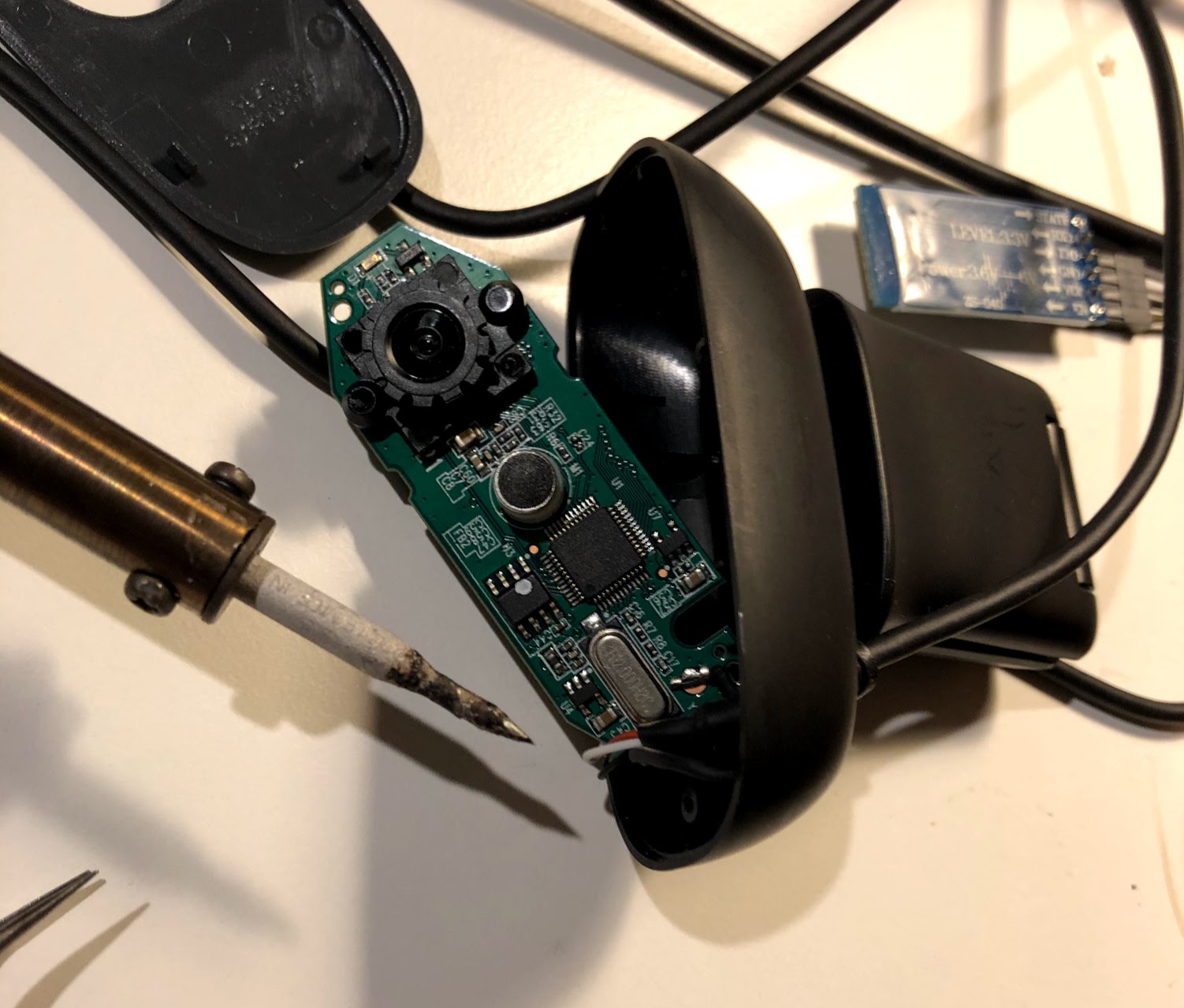 ラズパイカメラだとFFCケーブルの長さが足りないため、Webカメラ(Amazonで一番安かったLogicool製)から基板を引っこ抜き使用しています。マイクもついているため、今後呼びかけ等によるインタラクションにも拡張が行えそうです。