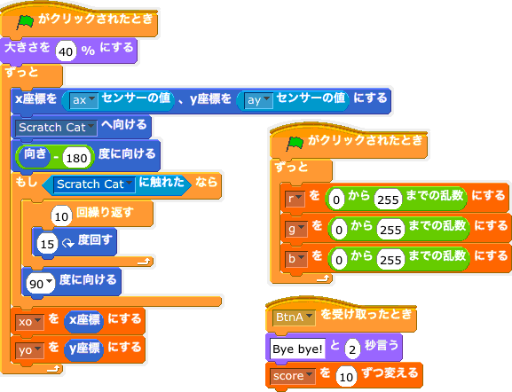 - Scratch遠隔センサーが使える。