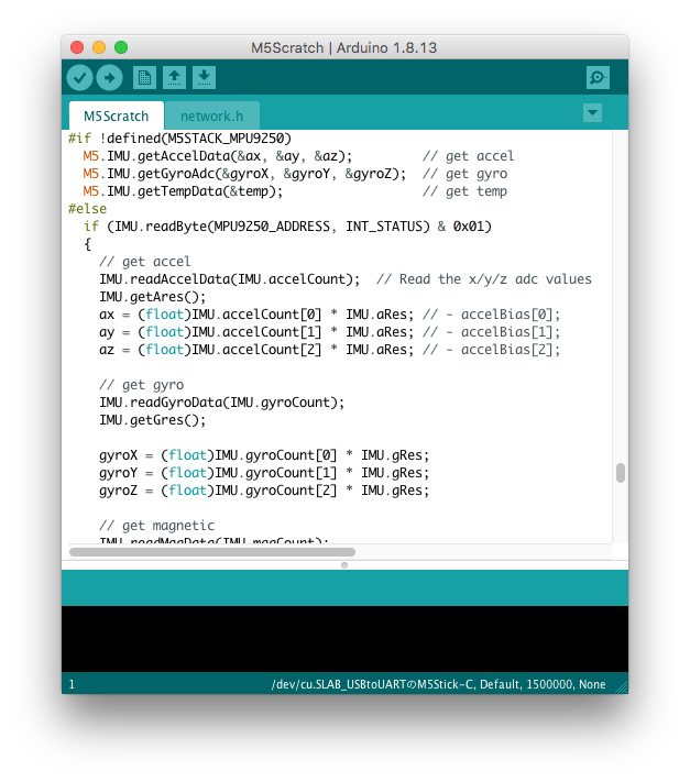 ただ、M5S側のコード(M5Scratch.ino)を変更しない限り、IMUのある機種を複数つなぐと、Scratch側の動作は不安定になります。