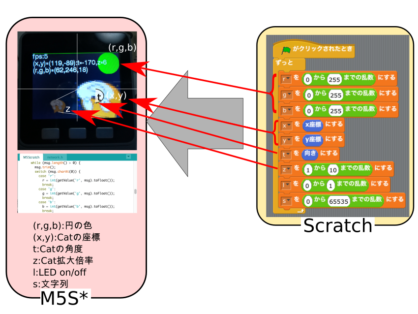 以下、M5SとScratchの情報のやりとりに関して簡単に説明します。