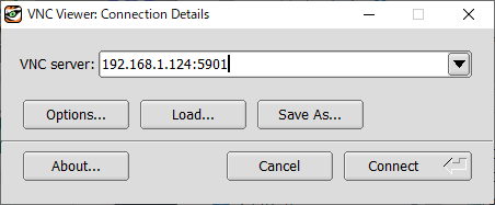 実行すると、接続用のウィンドウが開くので、Raspberry PiのIPアドレスとtigerVNCの標準port番号である5901 を入力して[Connect]