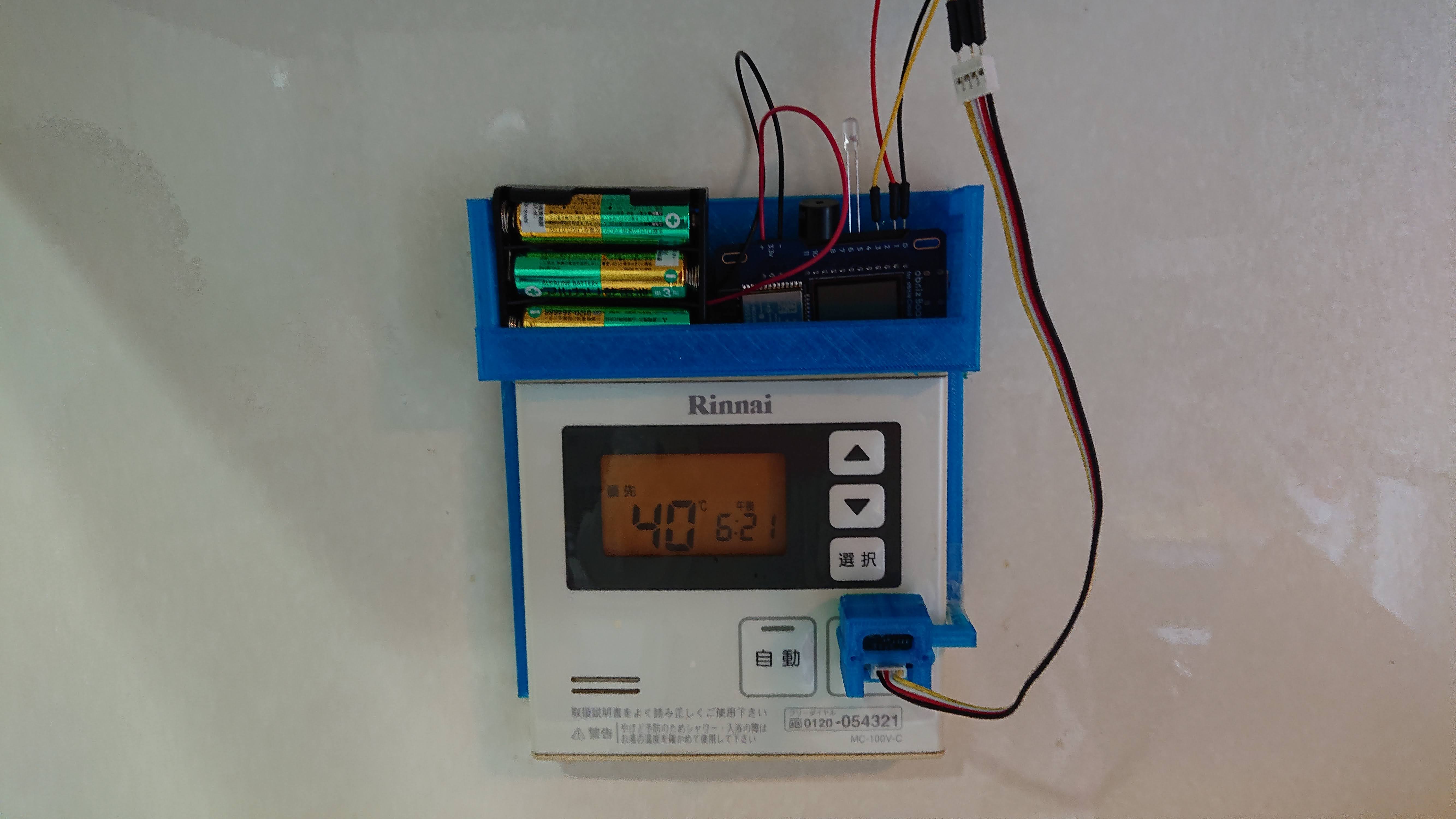 - お風呂のついたまま判定 → 台所の壁に設置されているお風呂リモコンの電源ランプの点灯状態を光センサーで検知して判定してみる