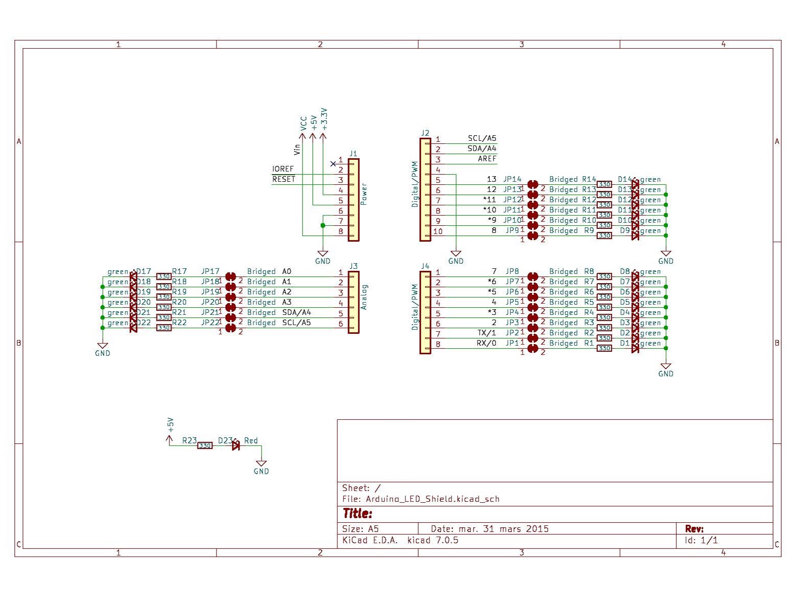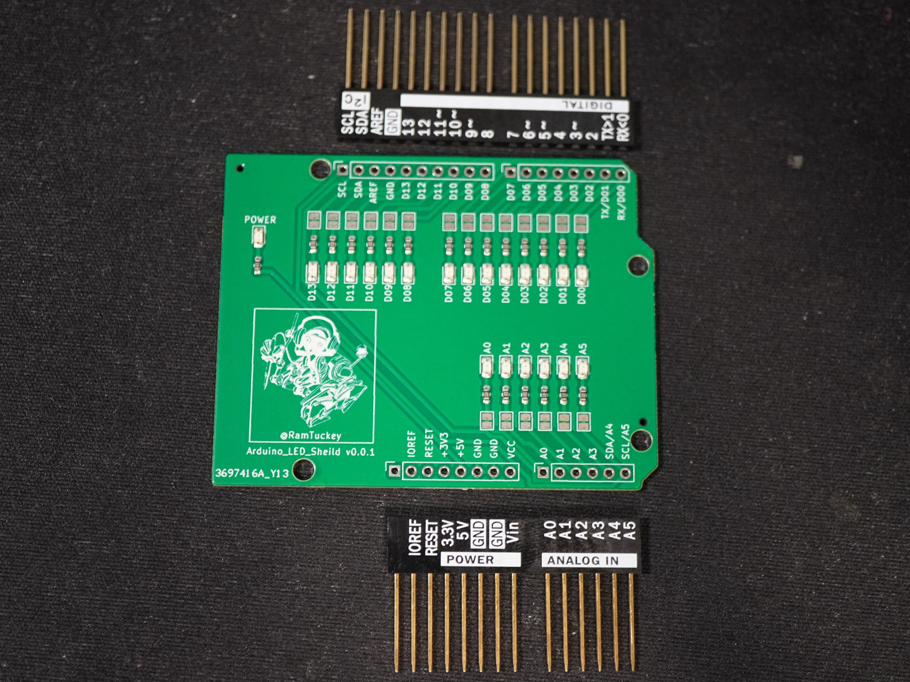 その点のわずらわしさを少しでも解消できるよに、Arduino UNO専用のLEDシールドを作成しました。