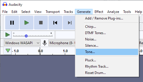 先ずは Generate→Tone を選択します。