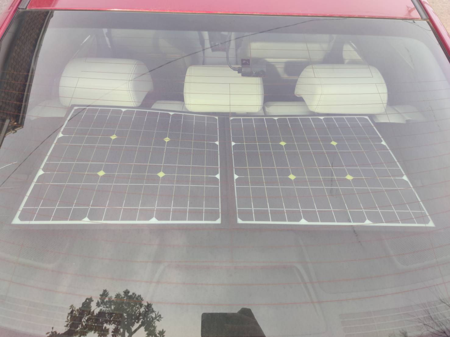 まずはバッテリー及び制御装置、ソーラーパネルの設置場所だが、セダン車なので、後部座席後ろの窓の部分にデットスペースがあるためそこへ、ソーラーパネルを