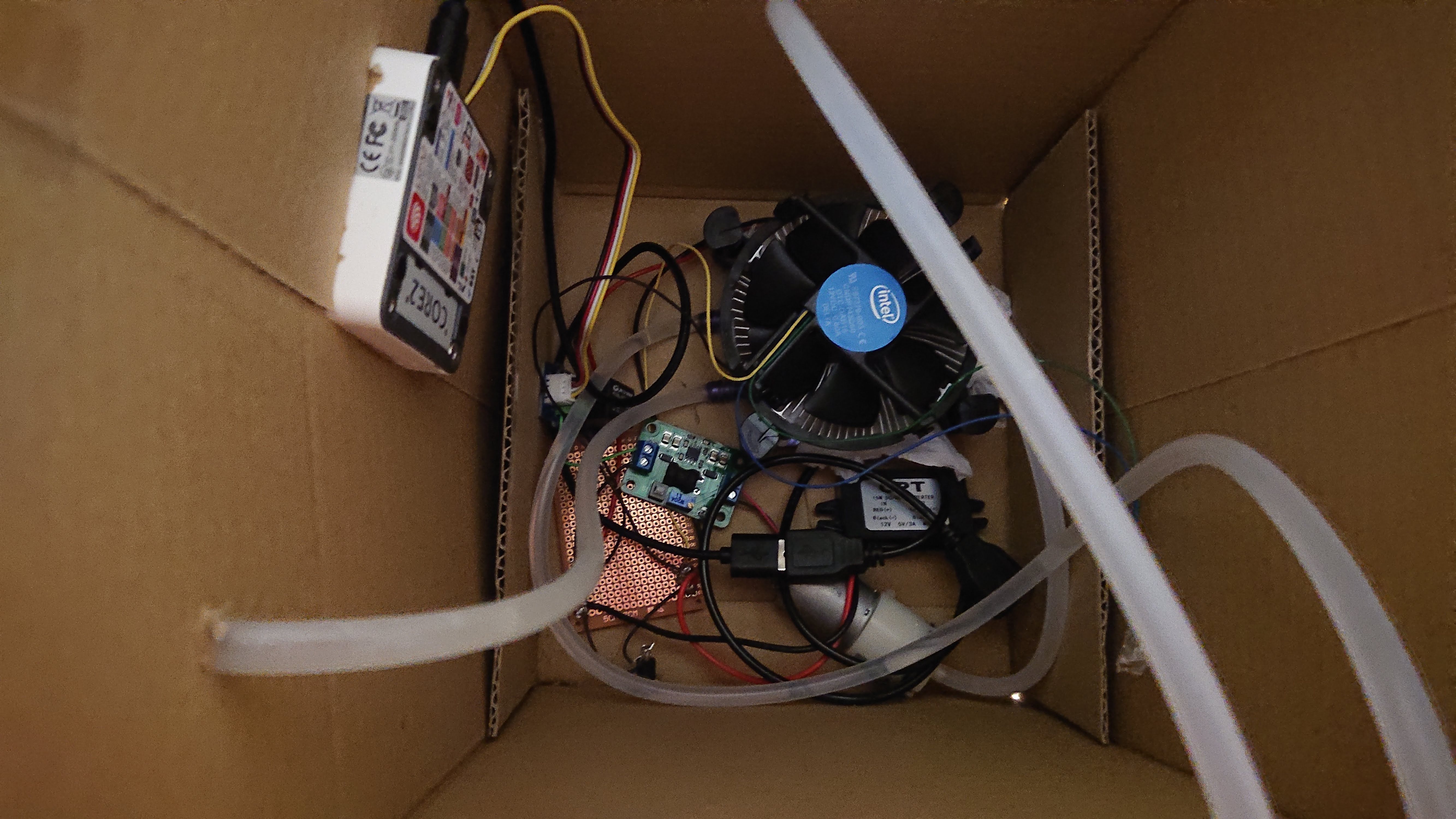 適切に冷やす件については、書いていませんでしたがポンプの強さで冷え具合が変わるので、ポンプに繋がっているDC-DC コンバータを調整する必要があります。(ポンプが強すぎると水流が早くなり冷えないので弱める)