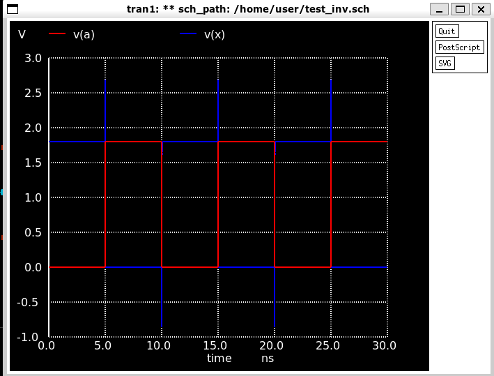value="va a 0 pulse(0 1.8 5n 1p 1p 5n 10n) dc 0