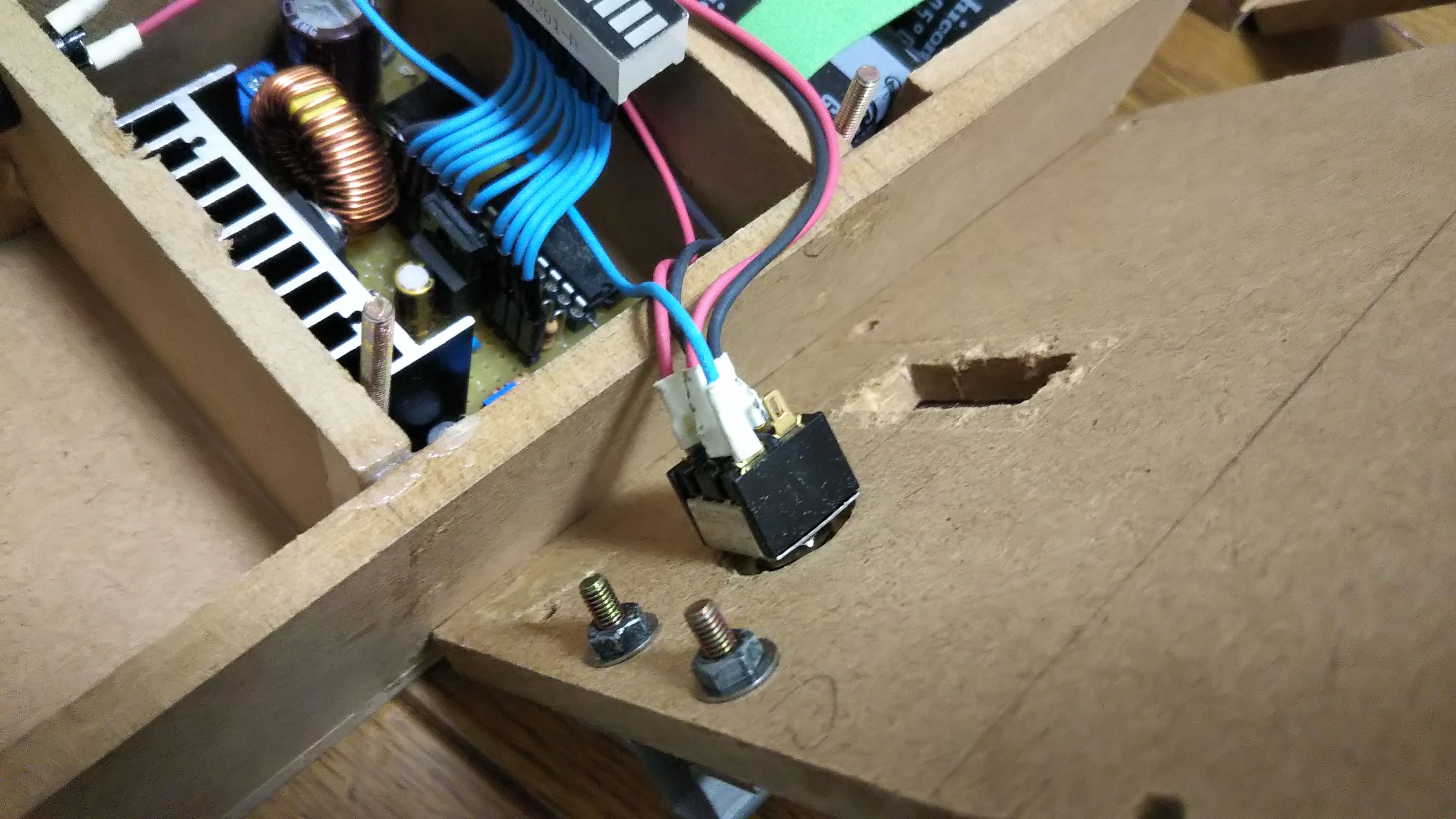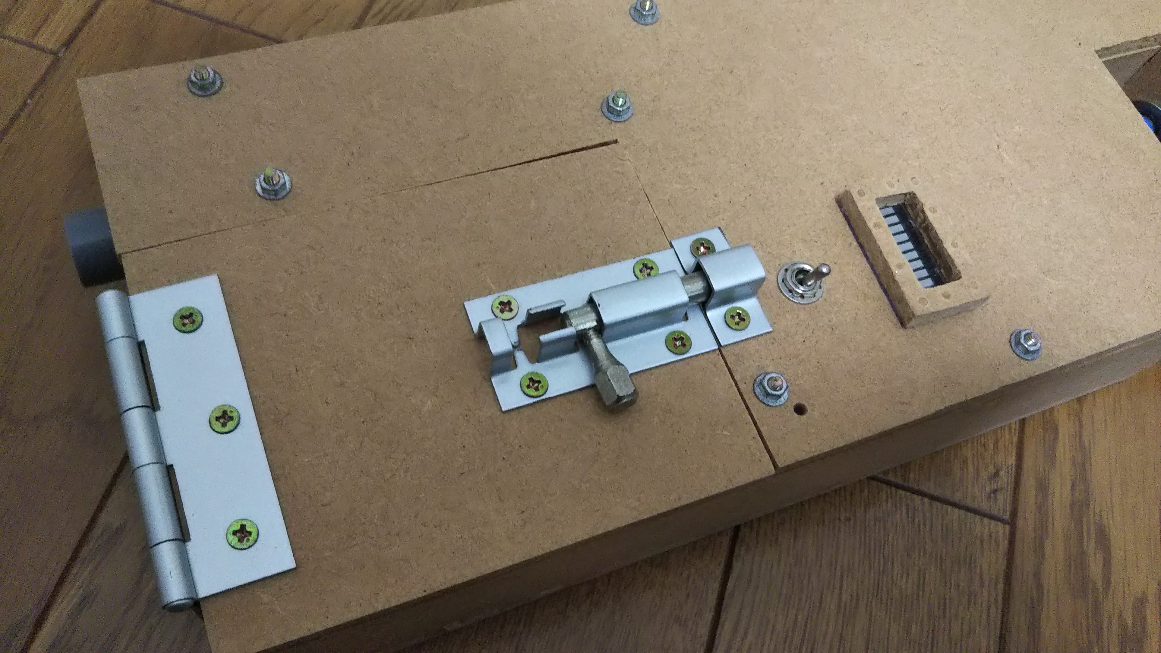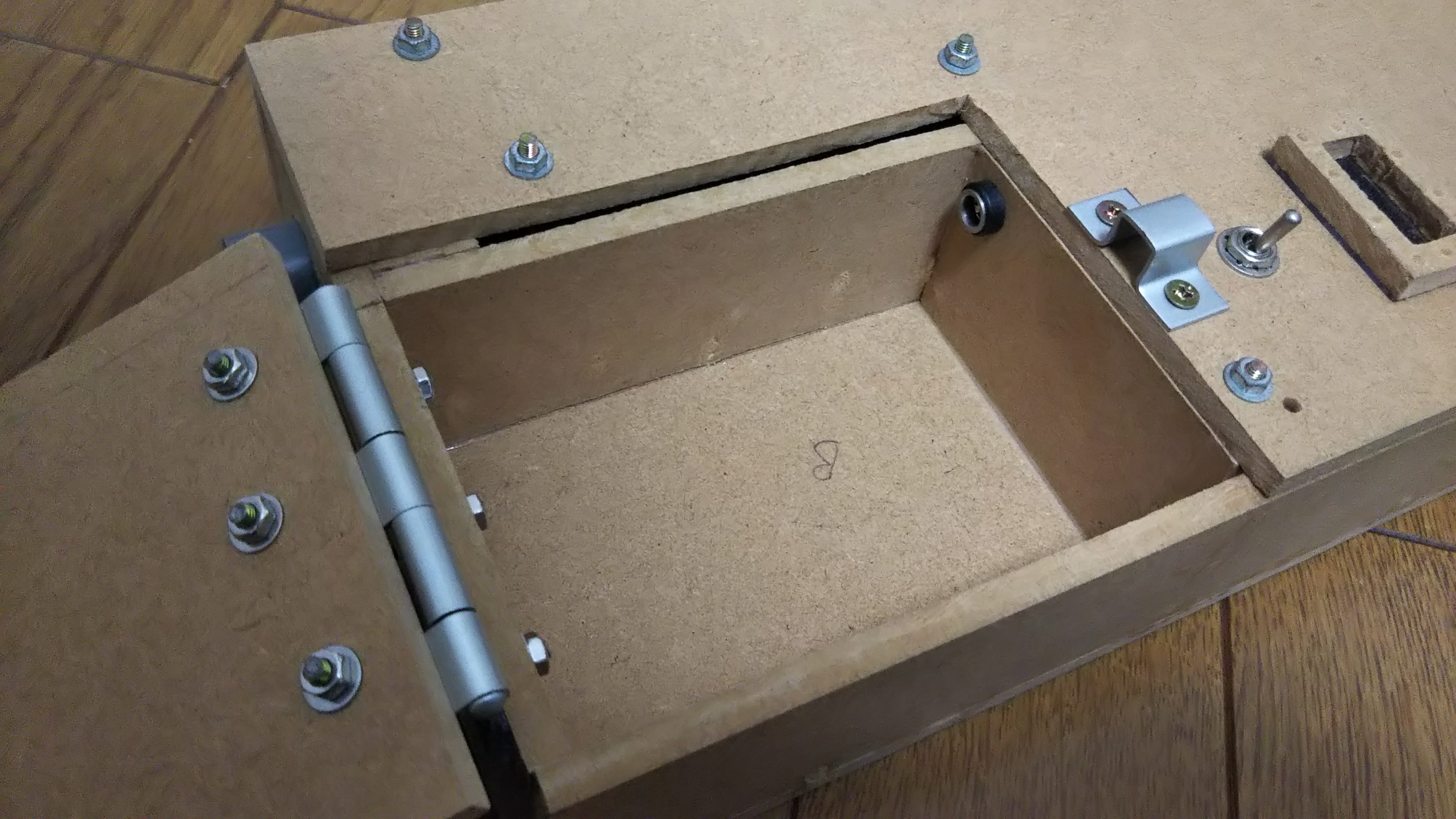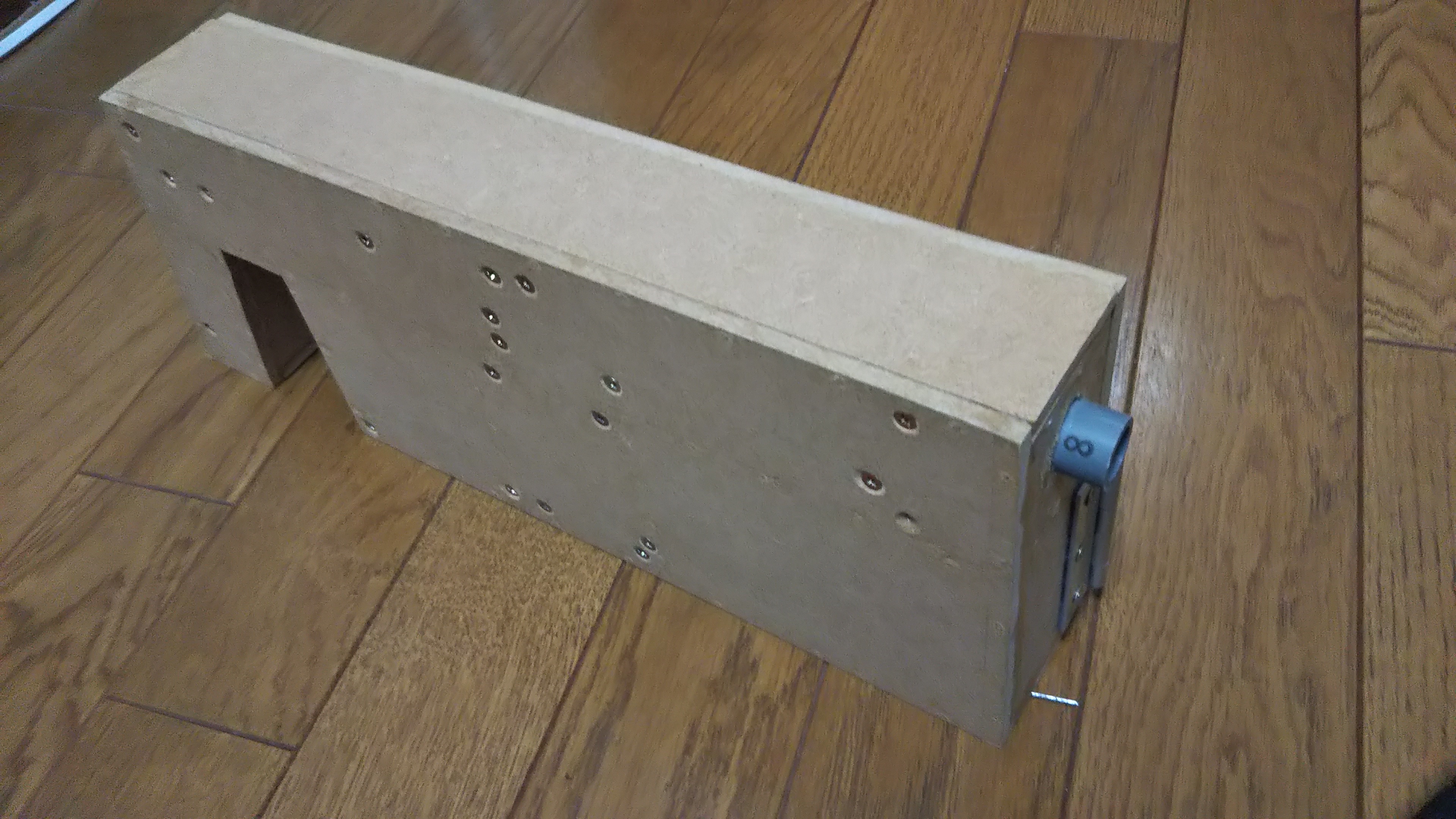 まずは外側を見てみましょう。本体はMDF材をのこぎりで切って箱にしています。