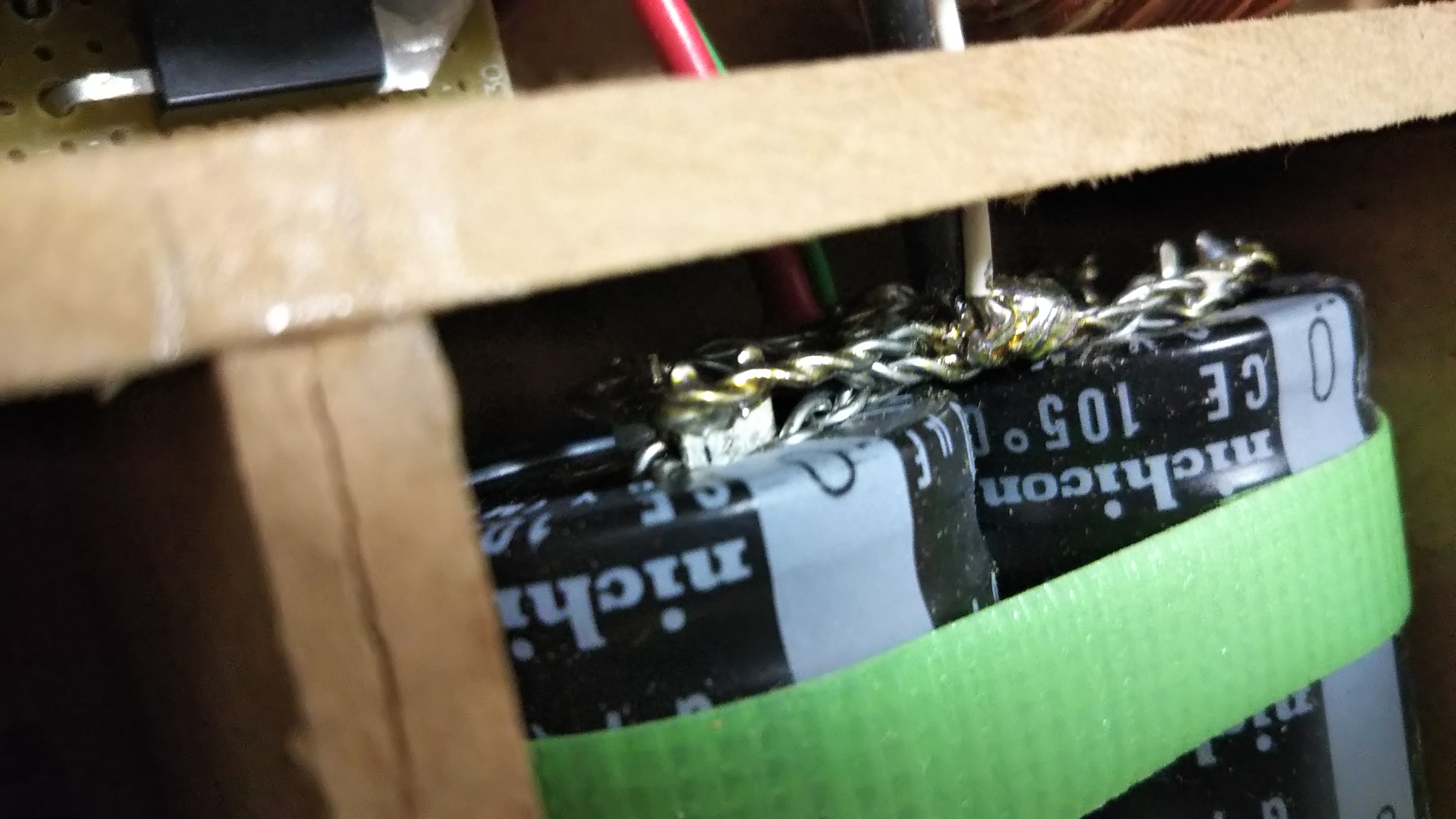 これが発射用コンデンサー、つまりはパチンコ玉発射機の命です。しっかりはんだ付けしておきましょう。
