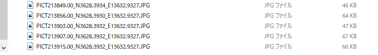 ちなみにファイル名に撮影時間と緯度・経度情報を加えました。これで場所と写真を紐付けられそうです。