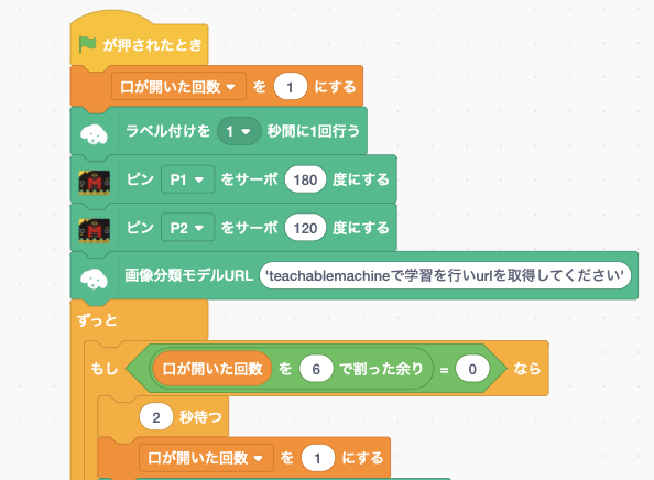 ・microbitをサーボドライバーに取り付けてサーボモーターを接続。