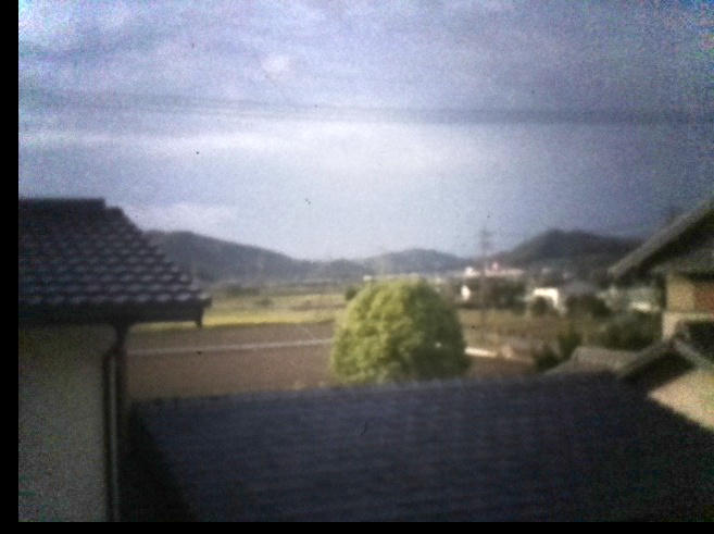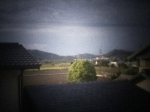 このカメラで撮影するとこのような写真が撮れました。周囲が暗くなるのは周辺減光とスクリーン投影時の光の拡散による影響です。