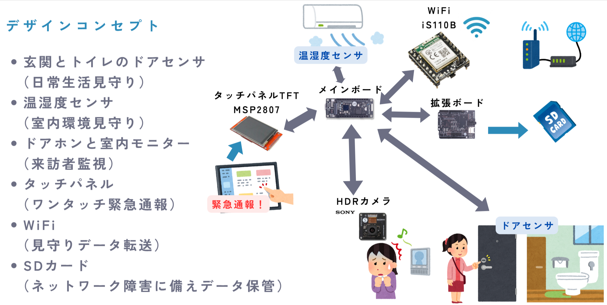 - 見守りデータの保管:SDカード