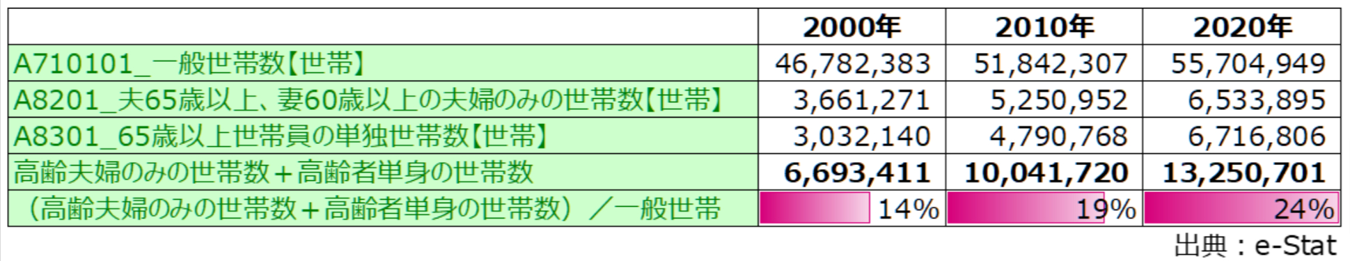 すでに、高齢者のみの世帯数割合は、全世帯の1/4を占めるまでになっている。