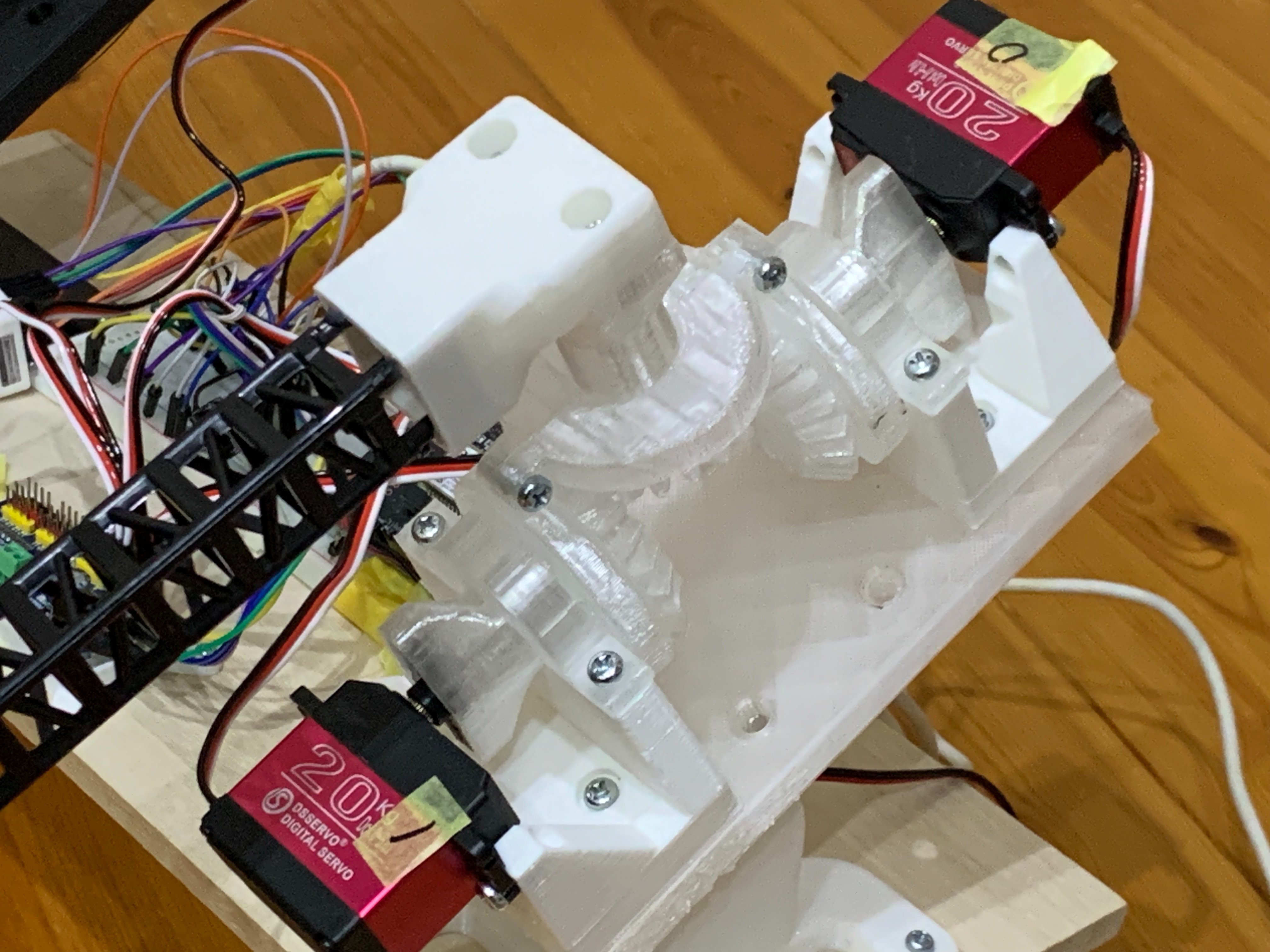 メカ部分、サーボ動作などは順調に作成(失敗)を進めていき、工具箱1箱分ほどのボツ部品を作ったところで大体機能は実現できました。