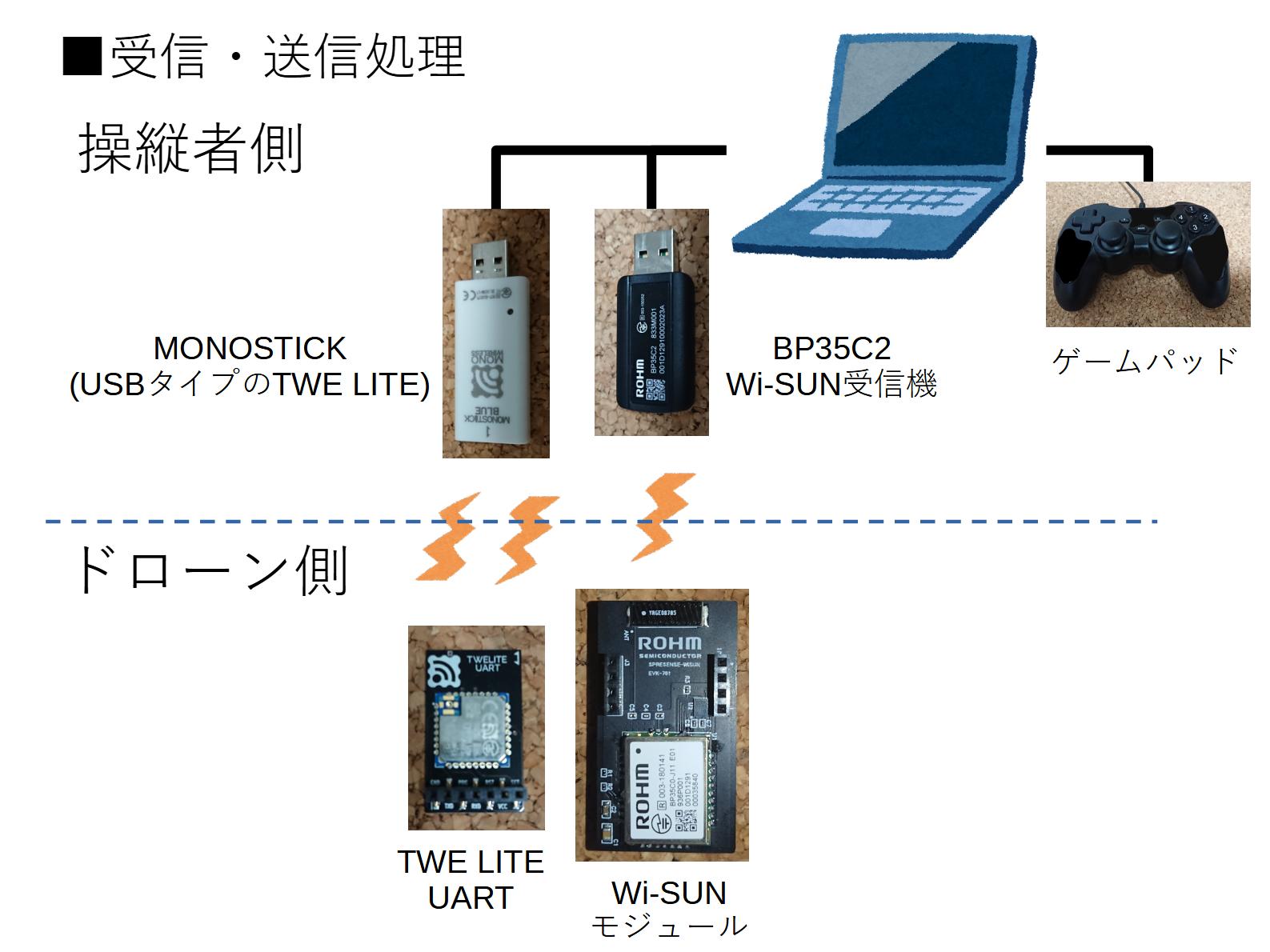 なんとなく操縦系とその他で通信方式を分けてみた。片方通信途絶したとき縮退完了まで操縦できるなどのフェールセーフ的用途では有効かも。