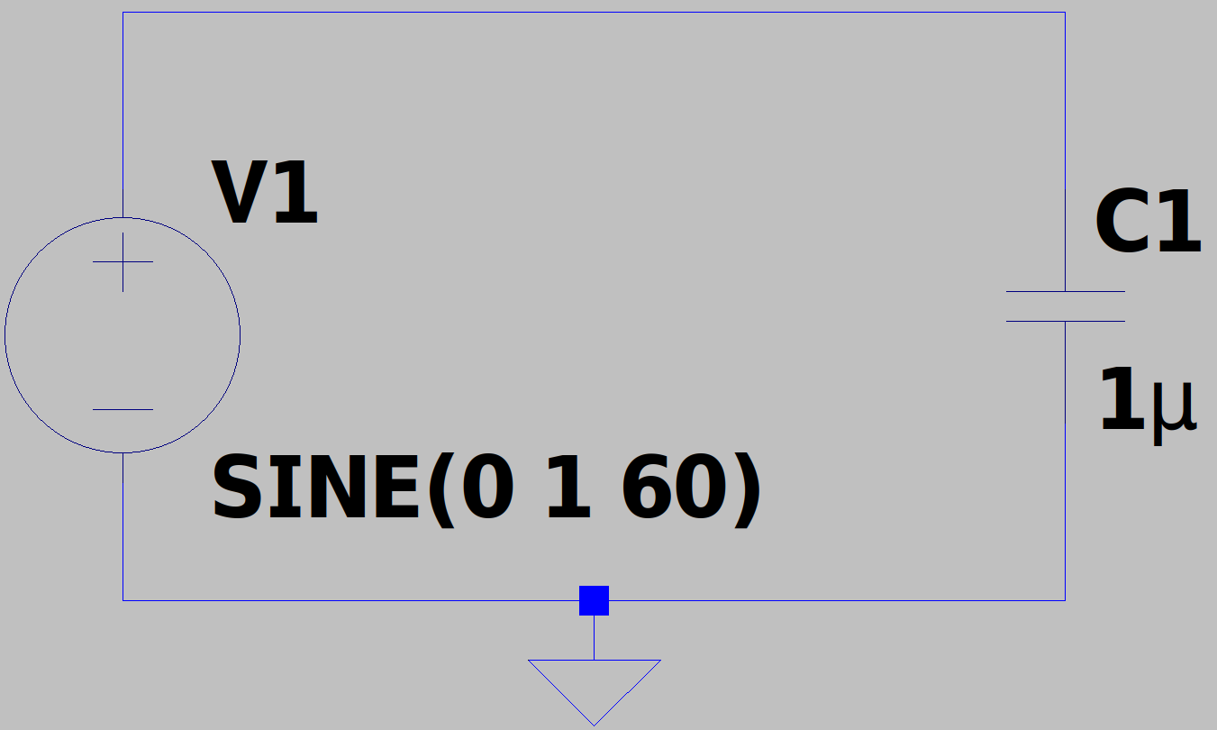 では、こちらの回路を解いてみますね。交流1[V]、周波数60[Hz]をかけたときコンデンサC1に流れる定常時の交流電流ICはいくらになるか??また電圧に対する電流の位相のずれφを答えよ。