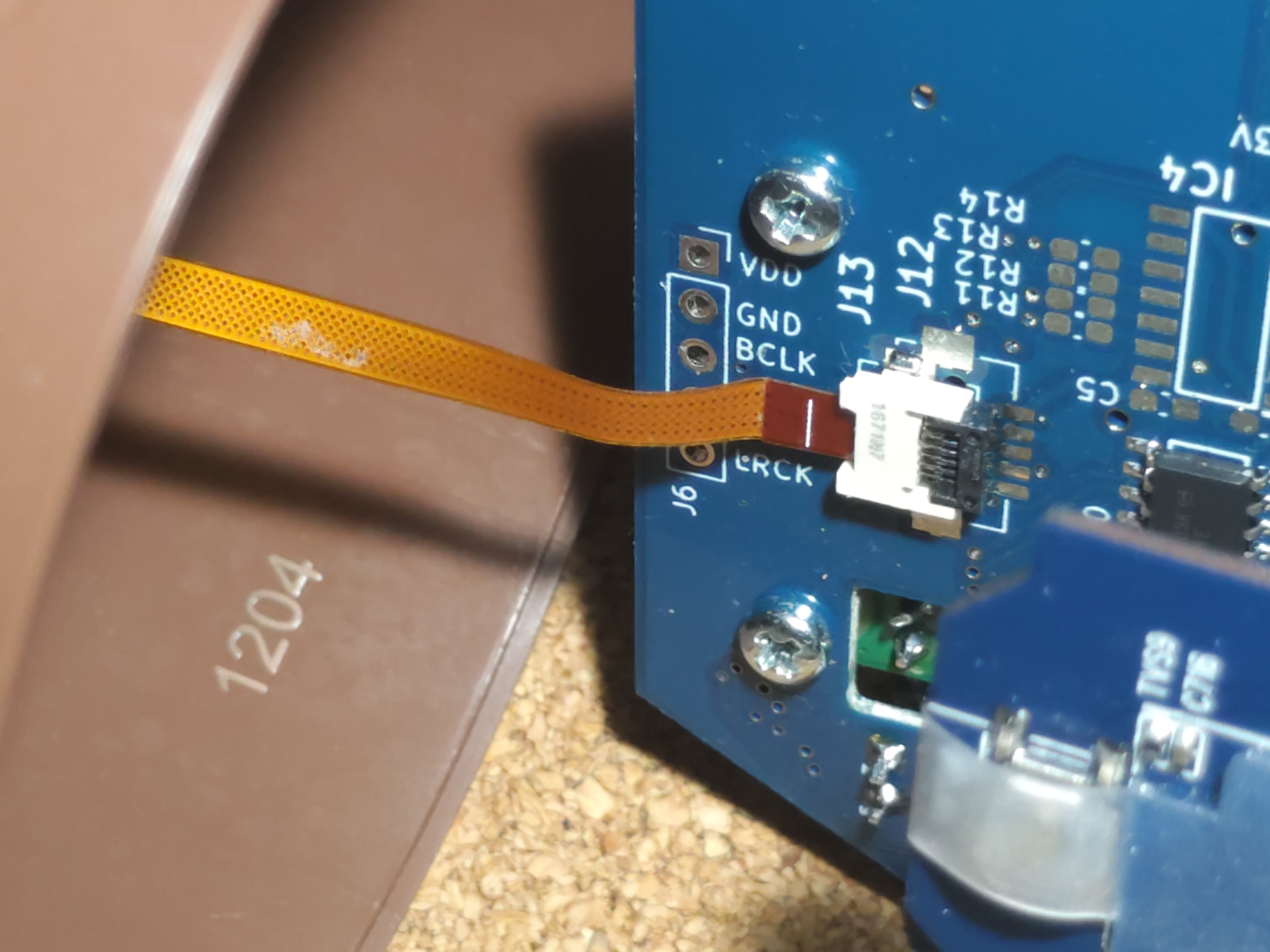 今までと同じ要領で、爪を持ち上げてロックを外して、フラットケーブルをコネクターに差し込みます。(この写真導光板を付け忘れた時の写真で、実際は導光板取付済みですね。後で写真を撮り直して置き換えておきます。)差し込んだら爪を倒してロックします。