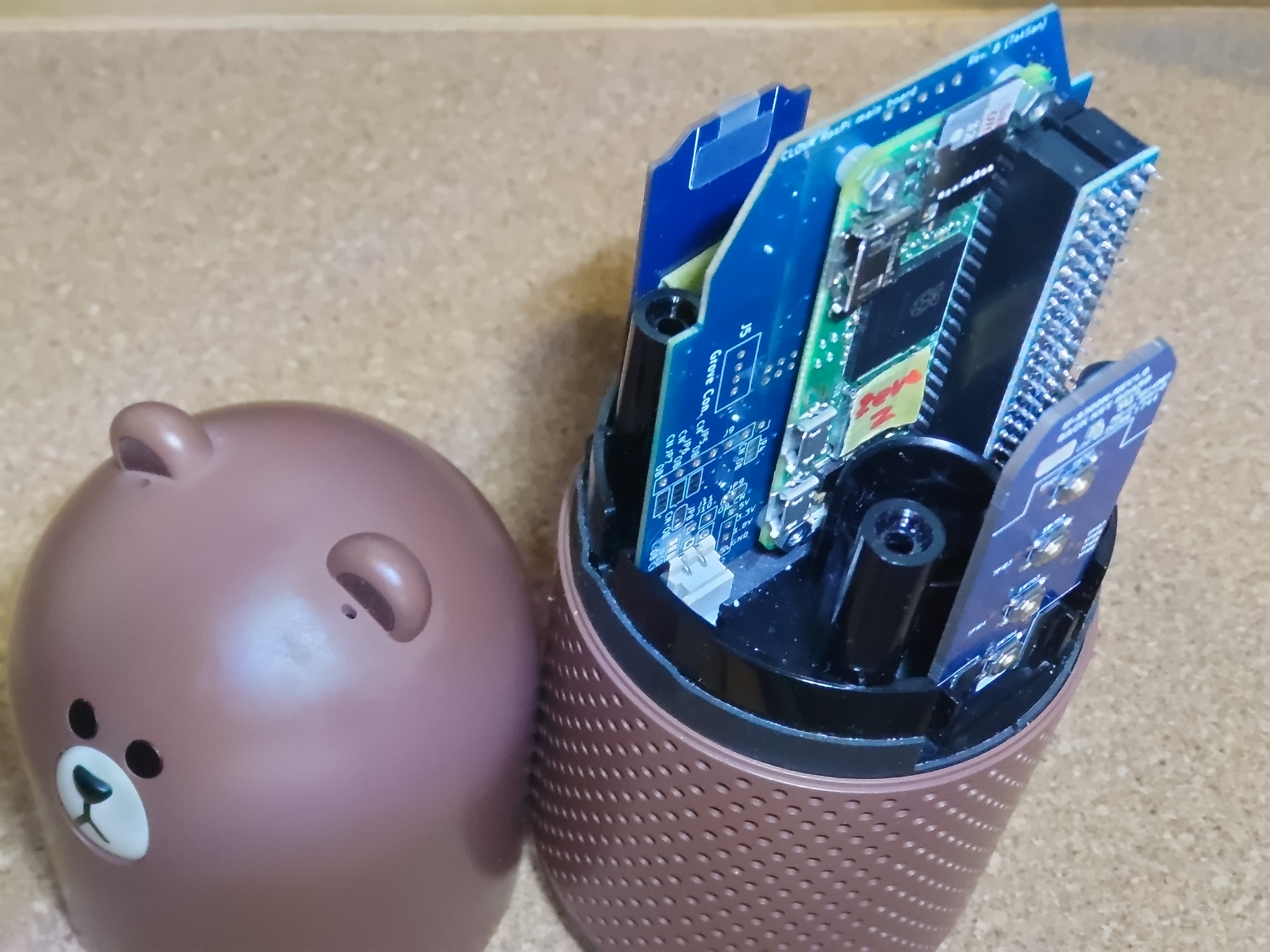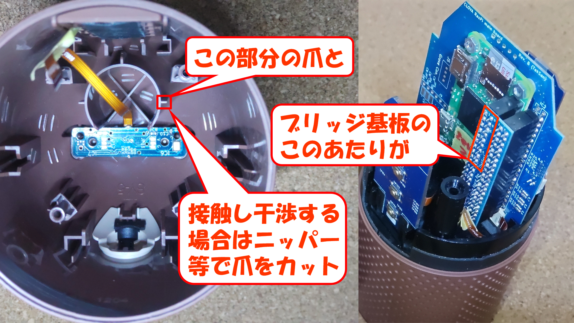 Android OS の入った LINE CLOVA オリジナルの元基板を取り払い、ラズベリーパイZero というコンピュータを載せた専用基板(以降 LINE CLOVA HUT と称します)に入れ換えて、その上に OS やソフトウェアを組み込みます。
