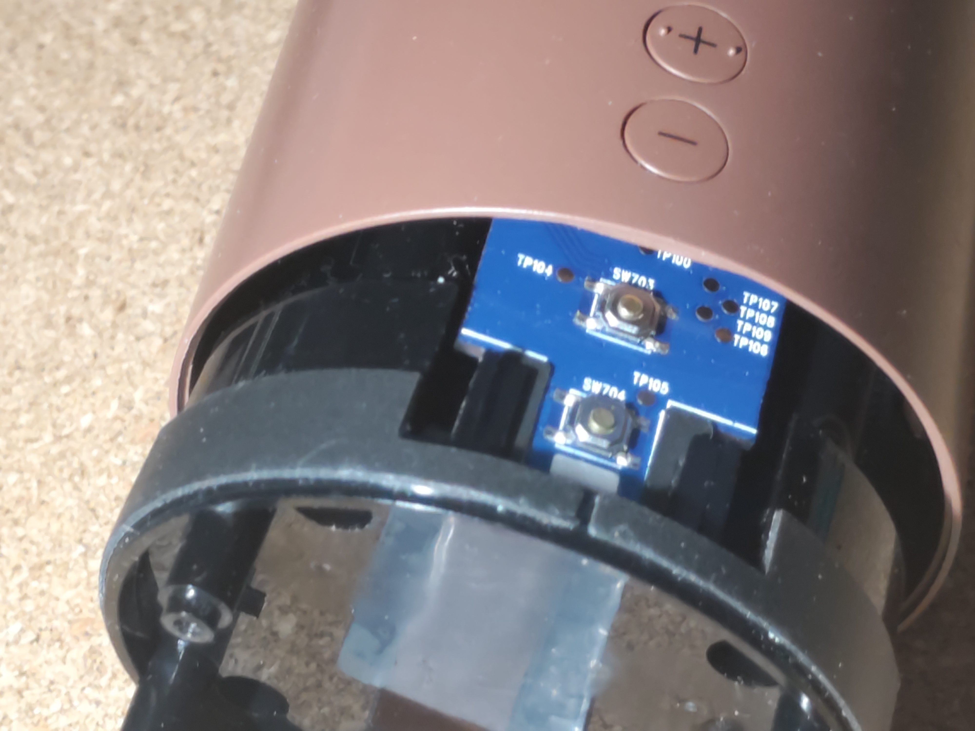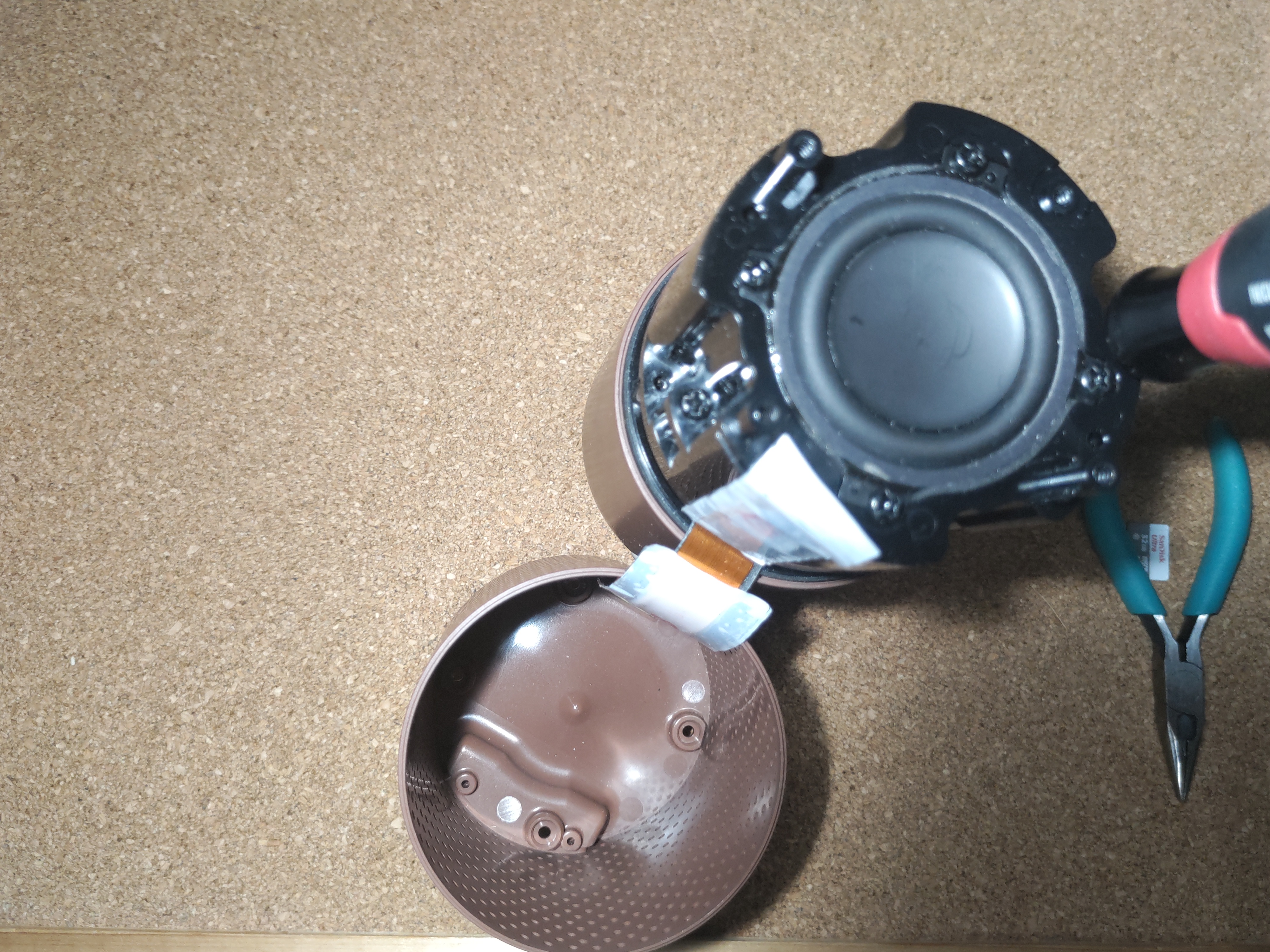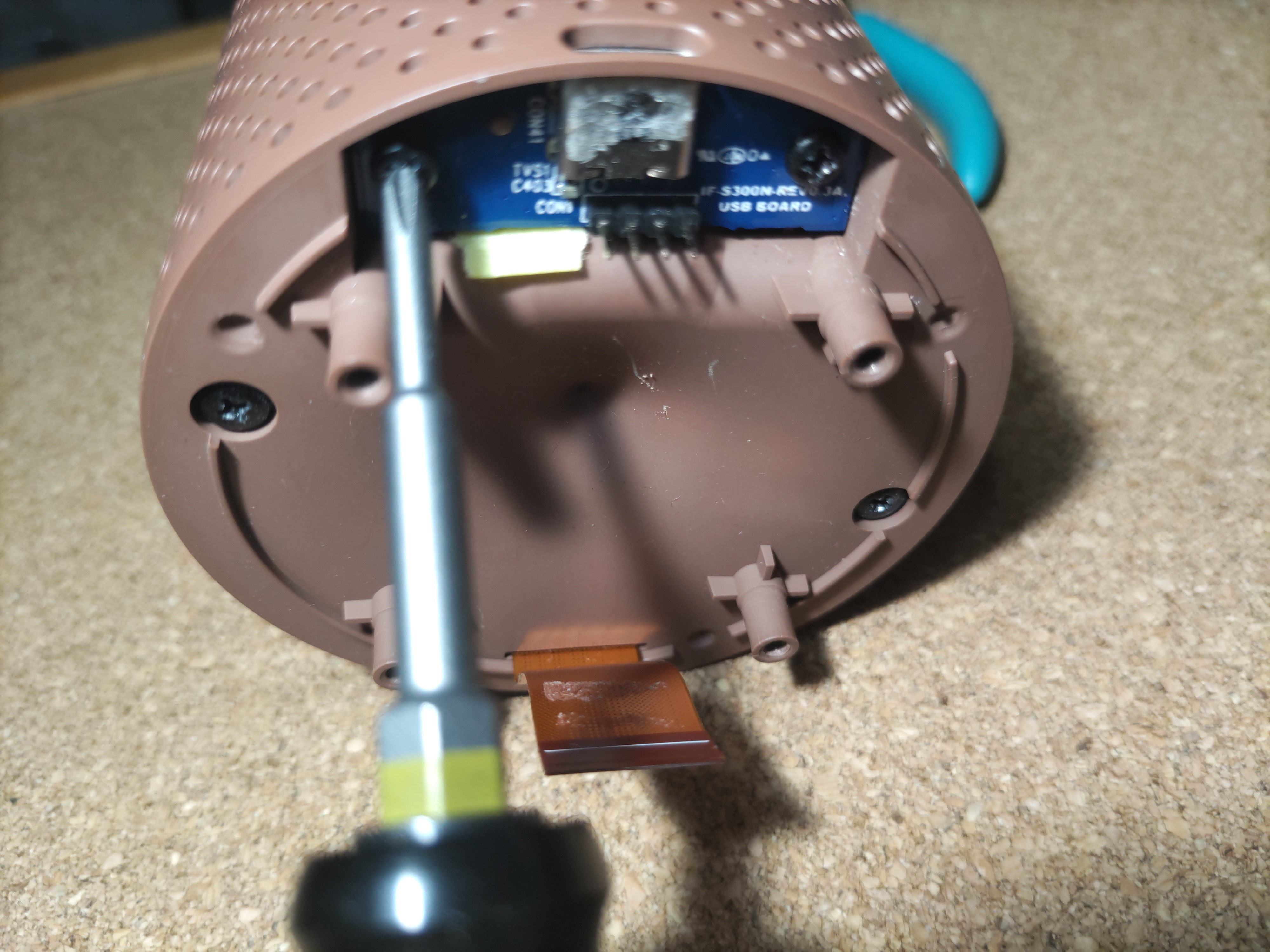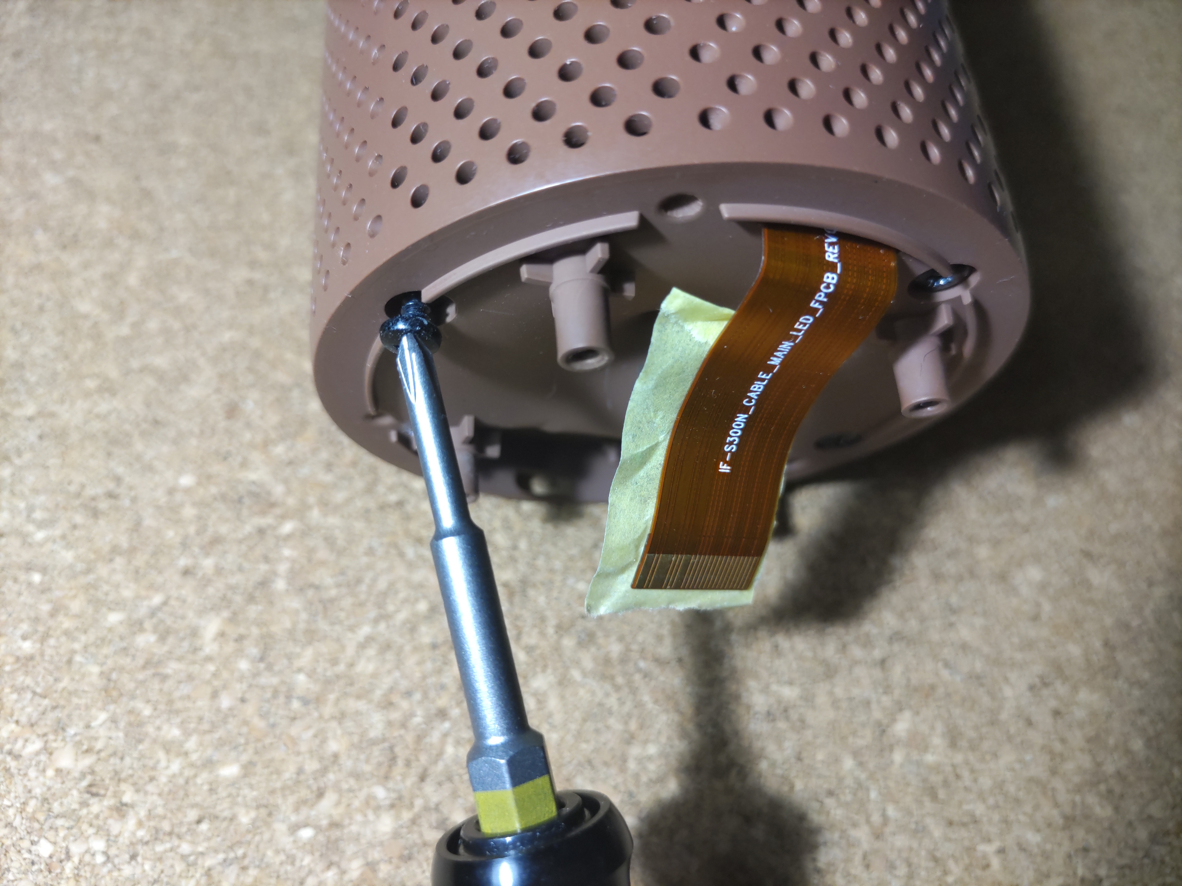 奥まで入ったら、パート1の 2-1-7. スピーカーカバー分離 で外したネジでカバーをネジ止めします。