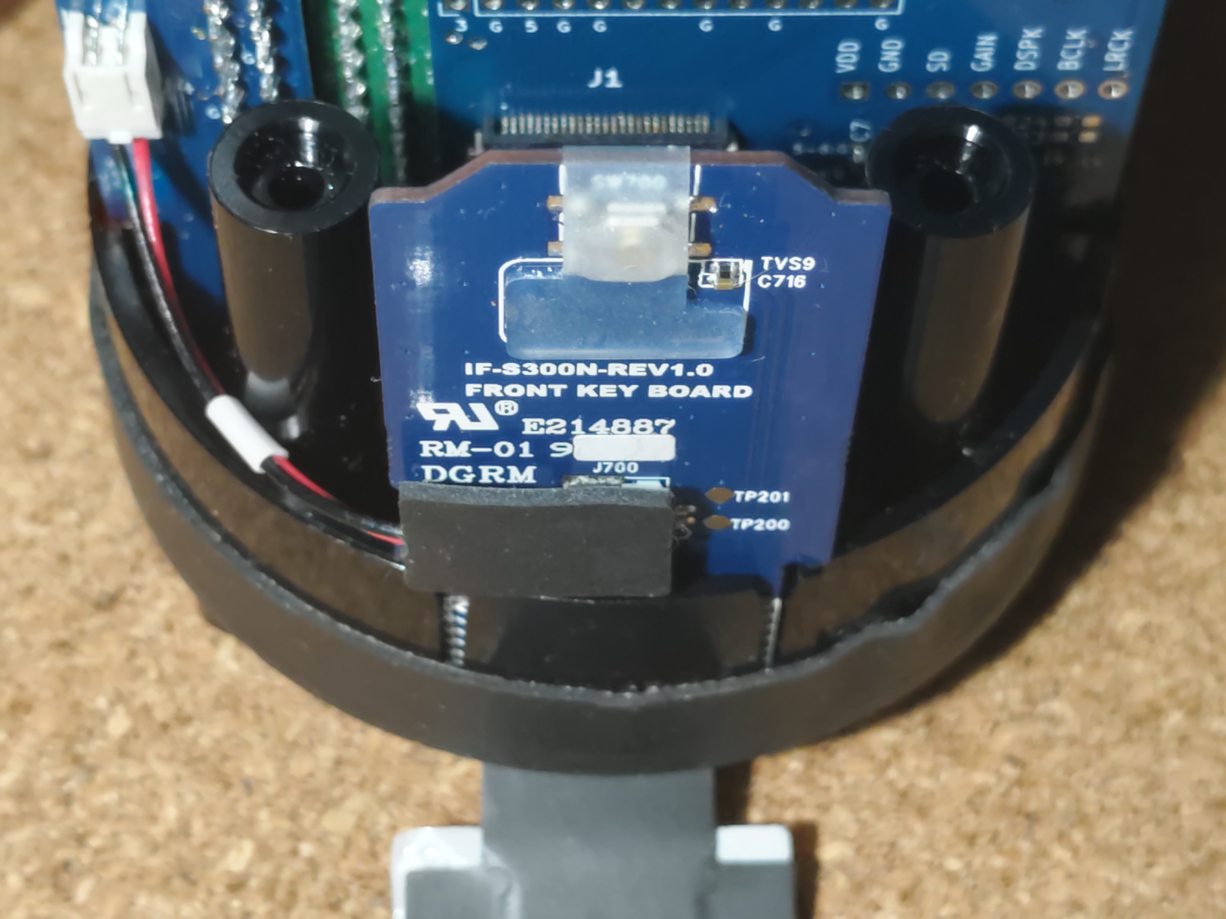 必要に応じて、 LINE CLOVA HUT 側のコネクタから、マイク基板ケーブルを抜いてください。
