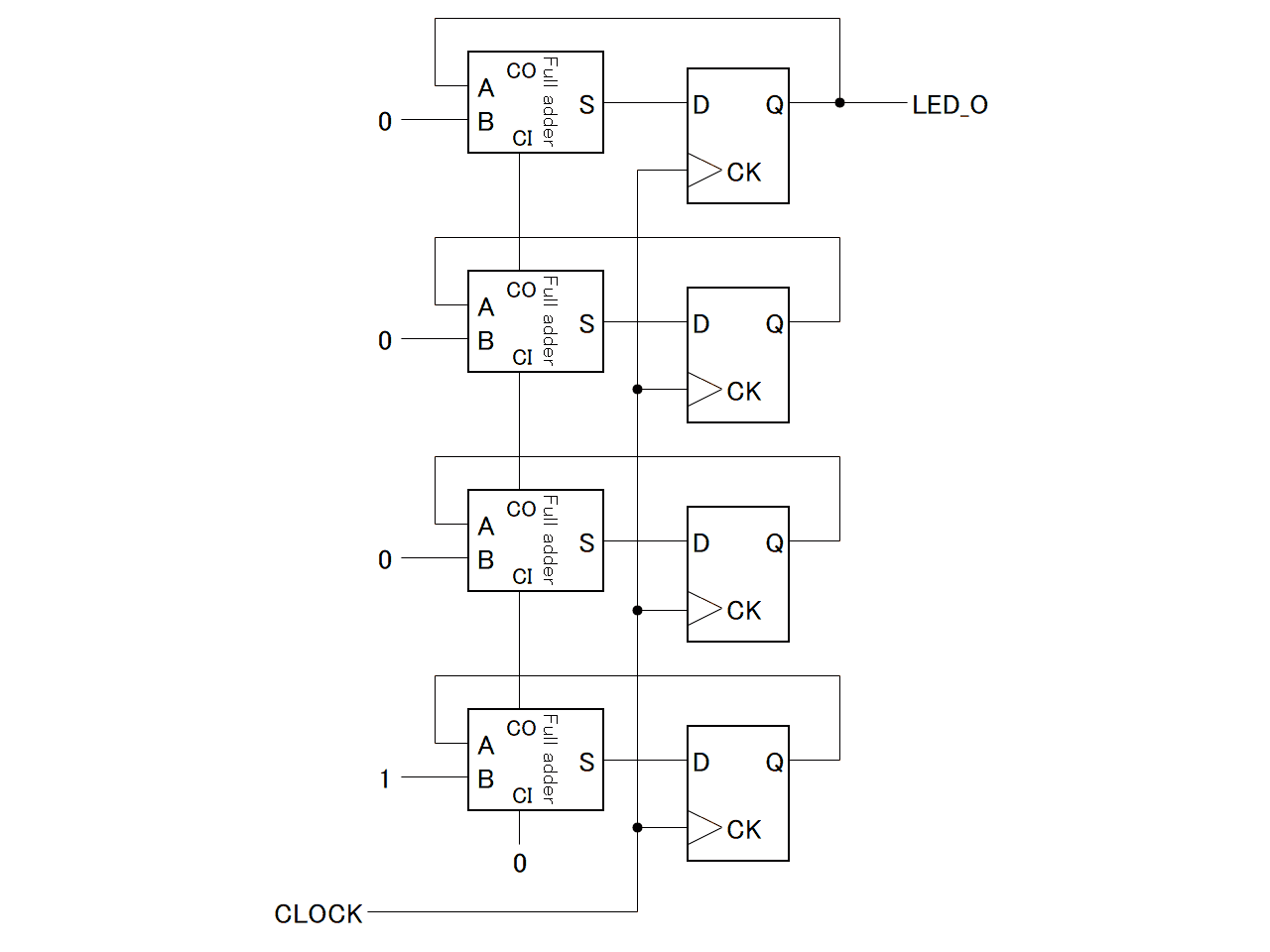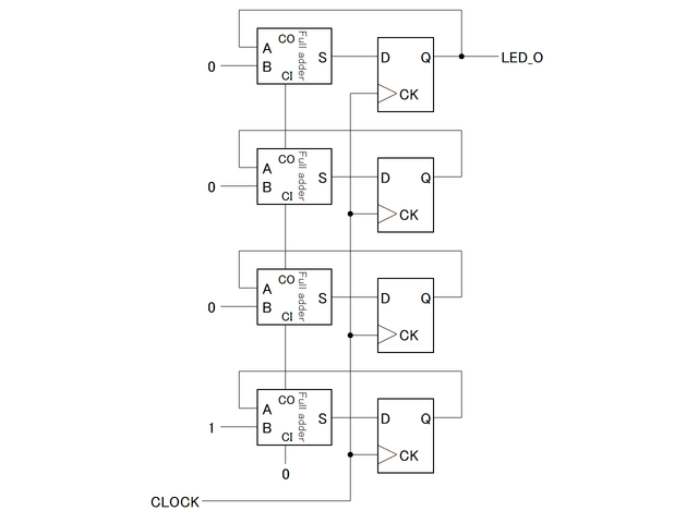 実際には、カウンタが常に「+1」なので、全加算器の片側の入力は0か1に固定されるので、さらに全加算器の回路を各bit毎に簡略化することは可能ですね。