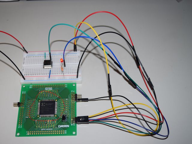 ツールの使用方法はここのページのメインではなさそうな気がしますので、ISEの使用方法は省略しますが、TDI/TMS/TCK/TDOを専用のダウンロードケーブルに接続して書き込みを行います。
